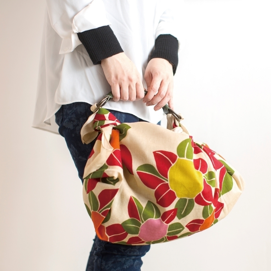 包んでクッションカバーにしたり、テーブルクロスや、結んでトートバッグやエコバックにもできます。