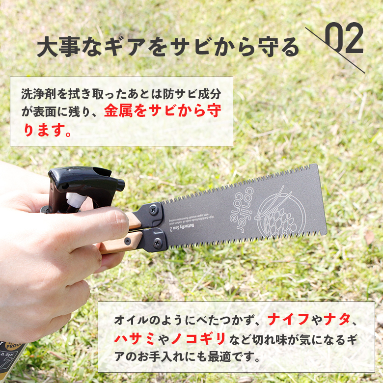 拭き取った後は防サビ成分が表面に残り、道具をサビから守ります。