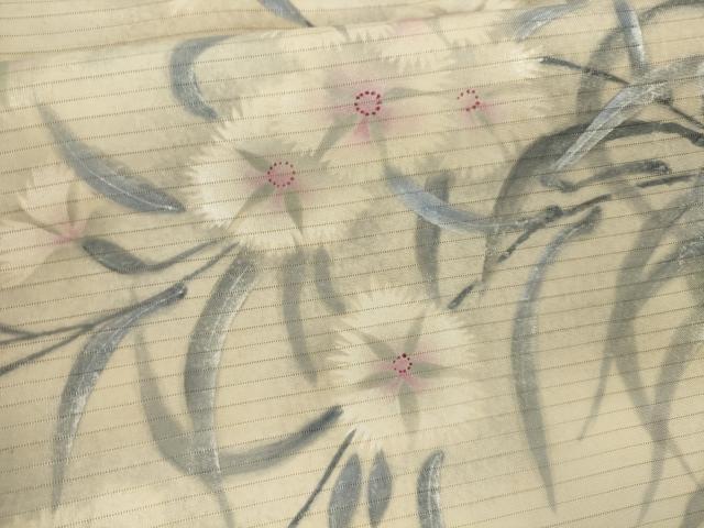 | 【正絹】 状態は接写画像のように表地所々・裏地に薄い汚れがございます。 大変上質な逸品になりますので ぜひお手入れをされてお召しになられてはいかがでしょうか。 お安く出品致しますので、是非この機会にいかがでしょうか? ※紐部分に接ぎとペン汚れがございます。