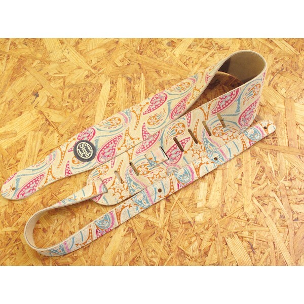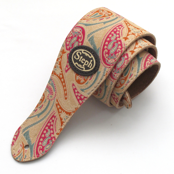 新品アウトレット Steph PAY-2205 ベージュ スエード/ペイズリー ギターストラップ レザーストラップ