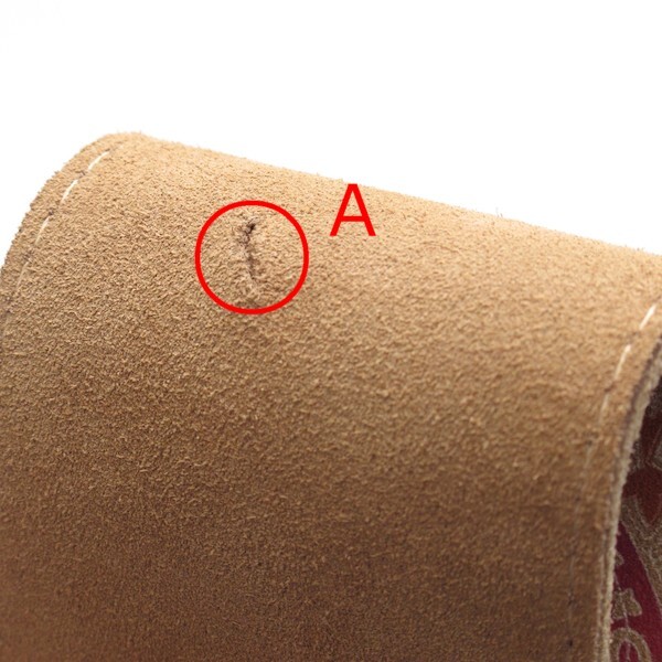 ※天然皮革に由来して質感が不均一となる個所や着色ムラがございます。特に本品につきましては裏地に目立つ部分(上掲画像○印内;同一個所[A])がございますためアウトレット品としてご案内申し上げます。※お買い上げ後にお届けしますのは、掲載いたしました写真の商品でございます。 ですが当方の撮影環境の都合、色や質感に関しましては実物を適切に表せていない場合がございます。 またスエード生地の性格上、生成の過程にて生地表面を削りますため、特にご購入時当初におきましては 量の多少はございますが 生地の起毛の間にスエード生地粉末が付着しております。予めご了承の上にてご検討願います。