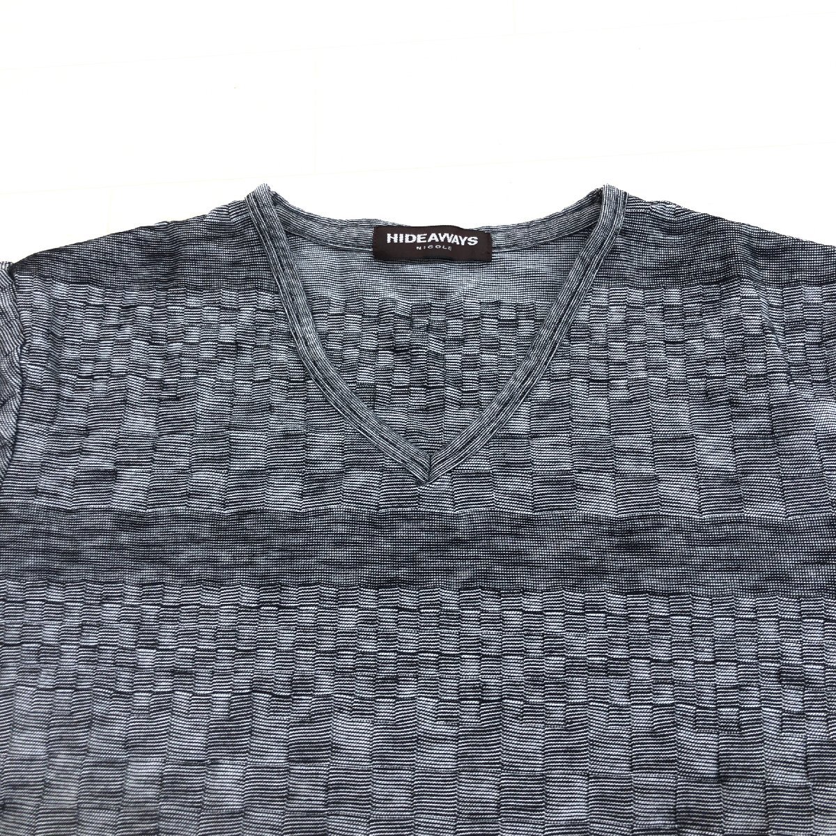 美品 HIDEAWAYS NICOLE ハイダウェイニコル コットン ニット編み Vネック Tシャツ 46(M) グレー 半袖 カットソー y2k グランジ Archive