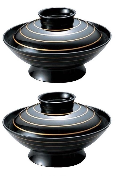 ☆業務用漆器耐熱5.5寸御殿型煮物碗黒金ライン内黒2個越前塗食器洗浄機対応日本製新品