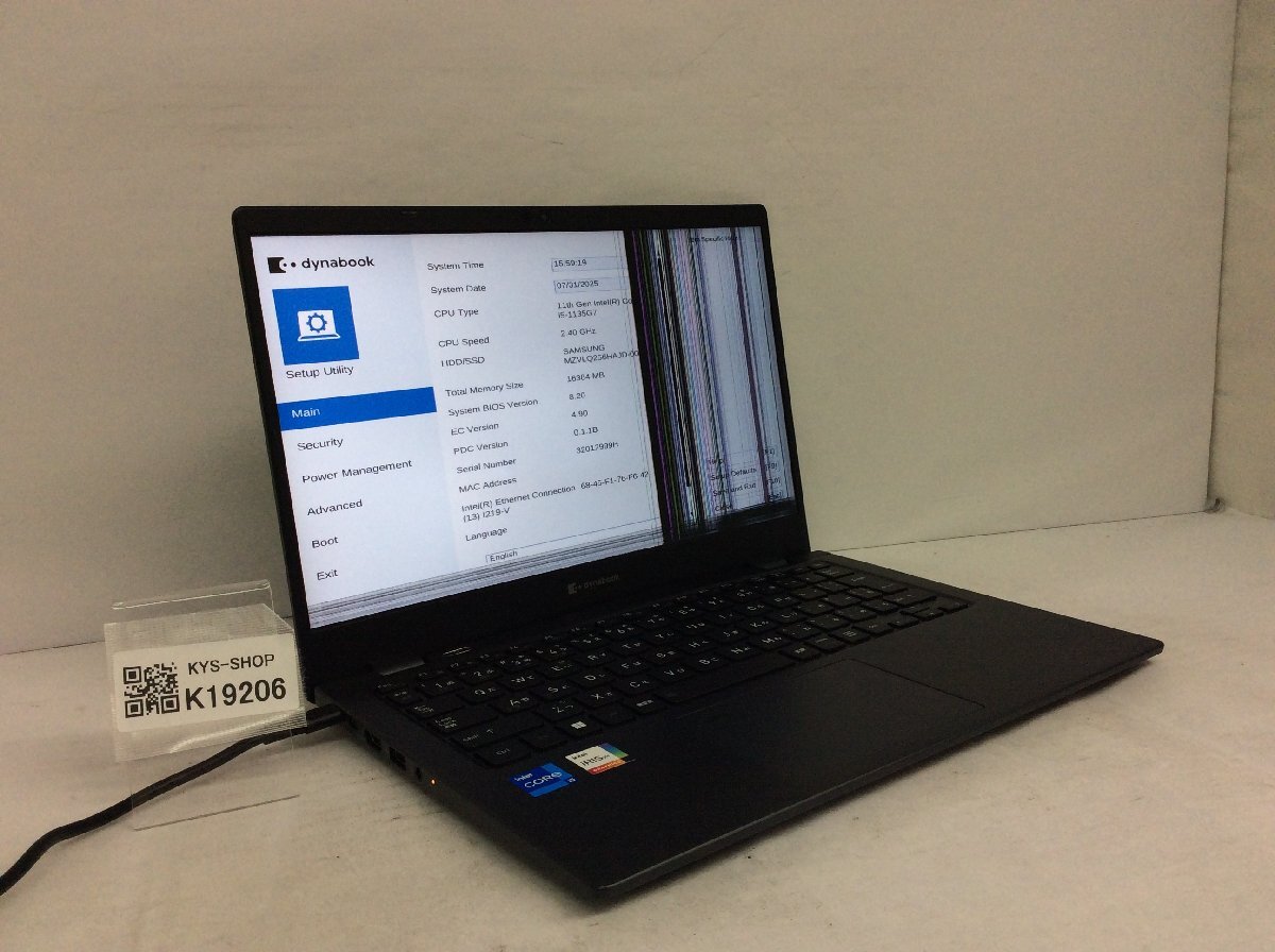 ジャンク/ TOSHIBA dynabook G83/HU Intel Core i5-1135G7 メモリ16.38GB NVME256.06GB 【K19206】