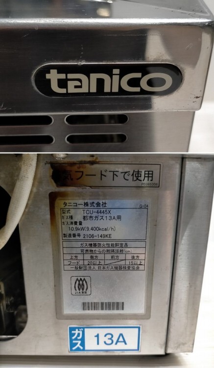 | 注意事項 | ※ガスホース接続が必要となります。 ※排水接続が必要です。排水接続:20A ※台車に載せて撮影しております。台車は付属いたしません。 |