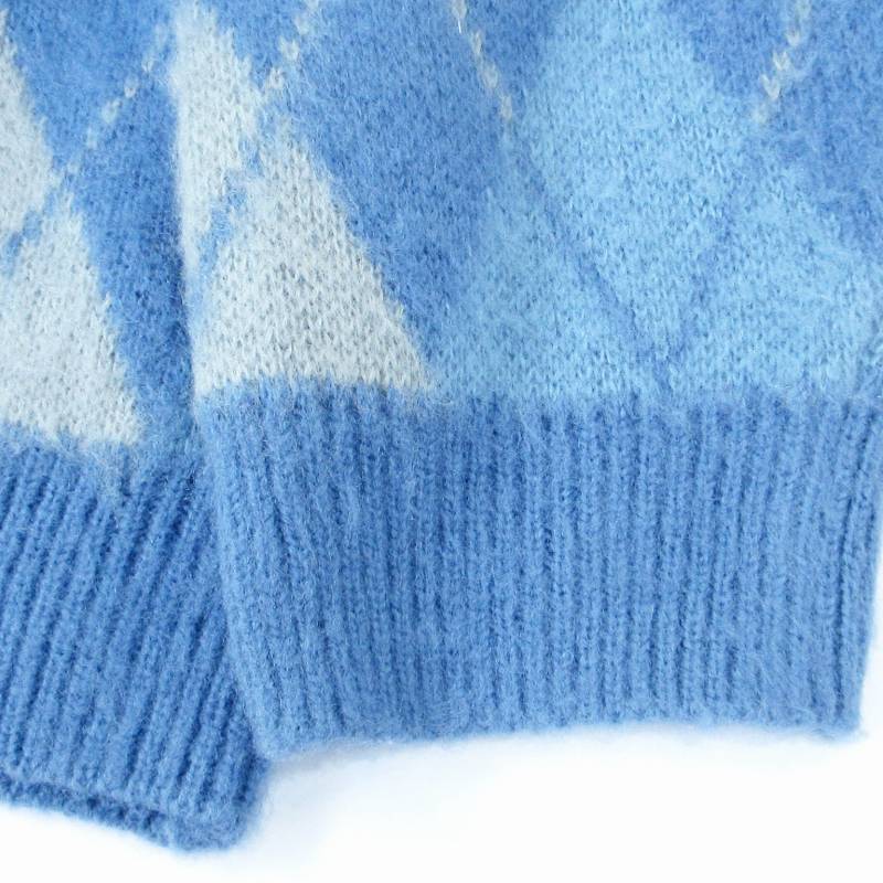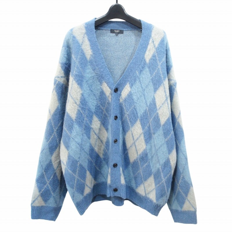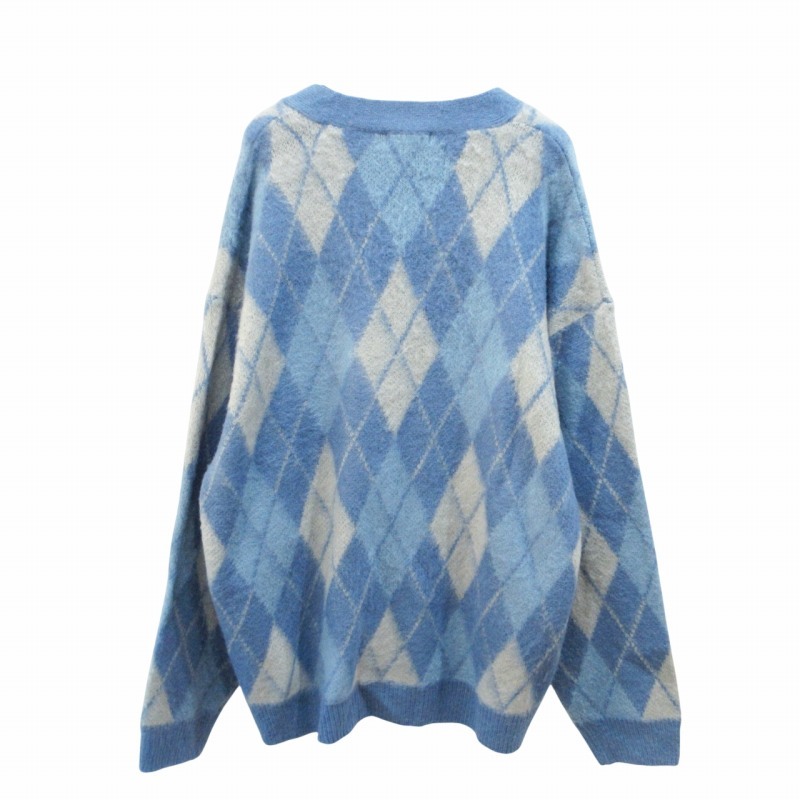 ビームスハート BEAMS HEART 22AW アーガイル ビッグ カーディガン ニット チェック オーバーサイズ L 青 ブルー 系 0804 メンズ