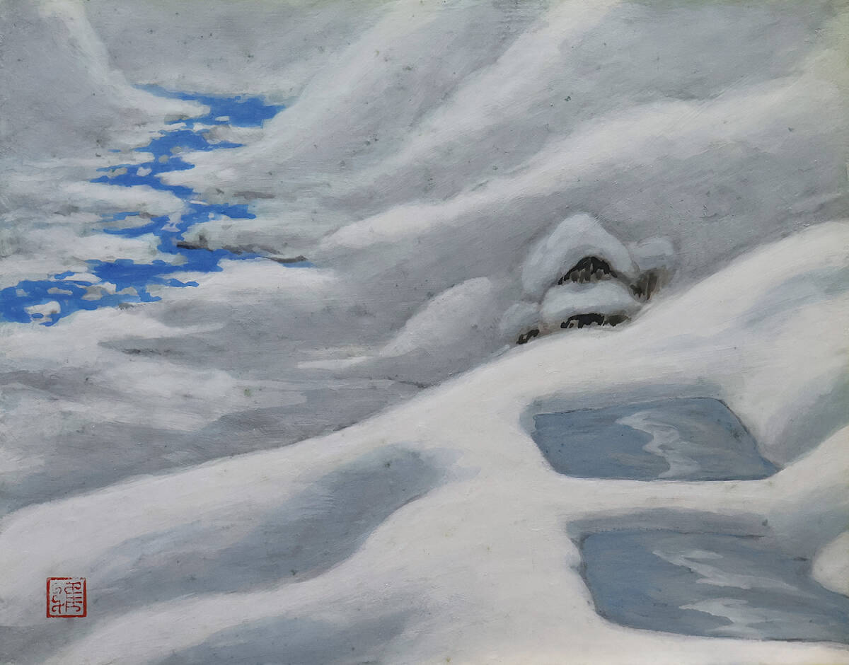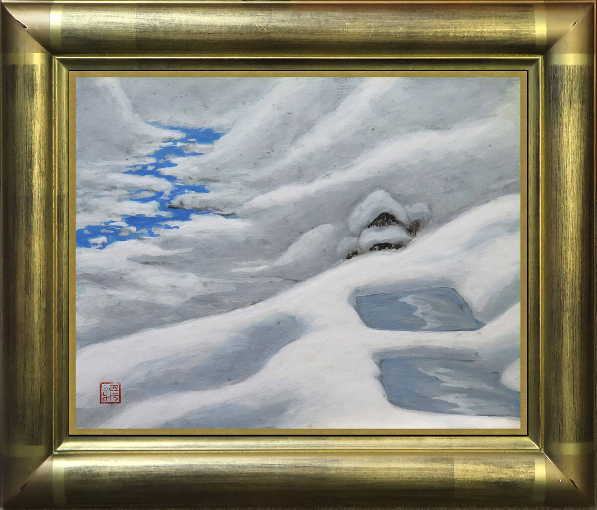 画家:村瀬雅夫 タイトル:春待つ谷 技法:紙本彩色 画面サイズ:32×41㎝ 額サイズ:46×55㎝ サイン:左下に印章 裏に共シール コンディション:シミがあります。 |