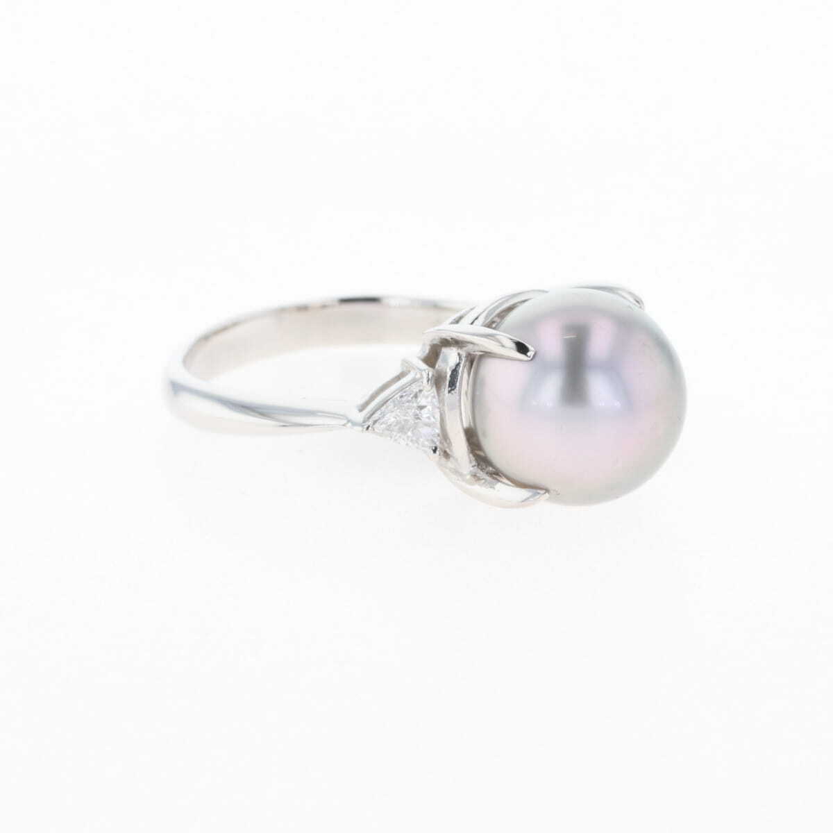 パール デザインリング プラチナ 指輪 メレダイヤ 真珠 リング 12号 Pt900 パール ダイヤモンド レディース 【中古】 |