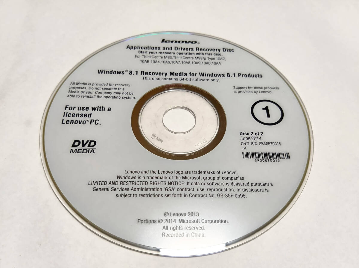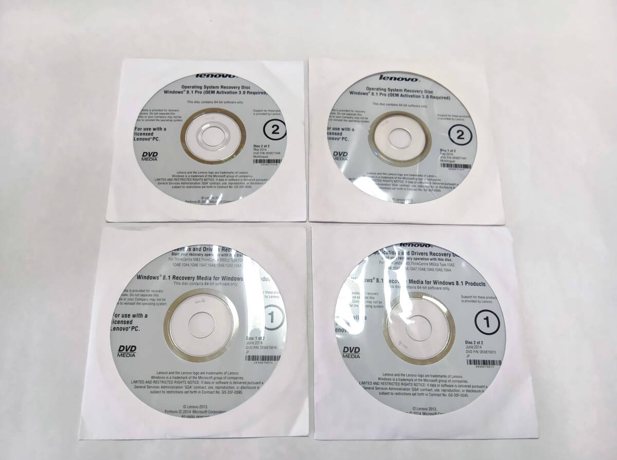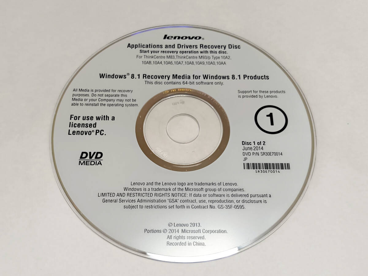Lenovo ThinkCentre M83 / M93用 Windows 8.1 64-bit Recovery DVD、Drivers Recovery DVD 計4枚
