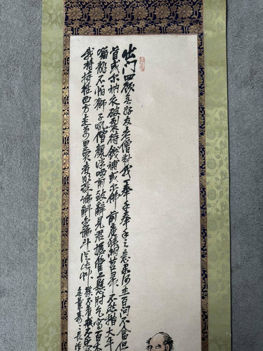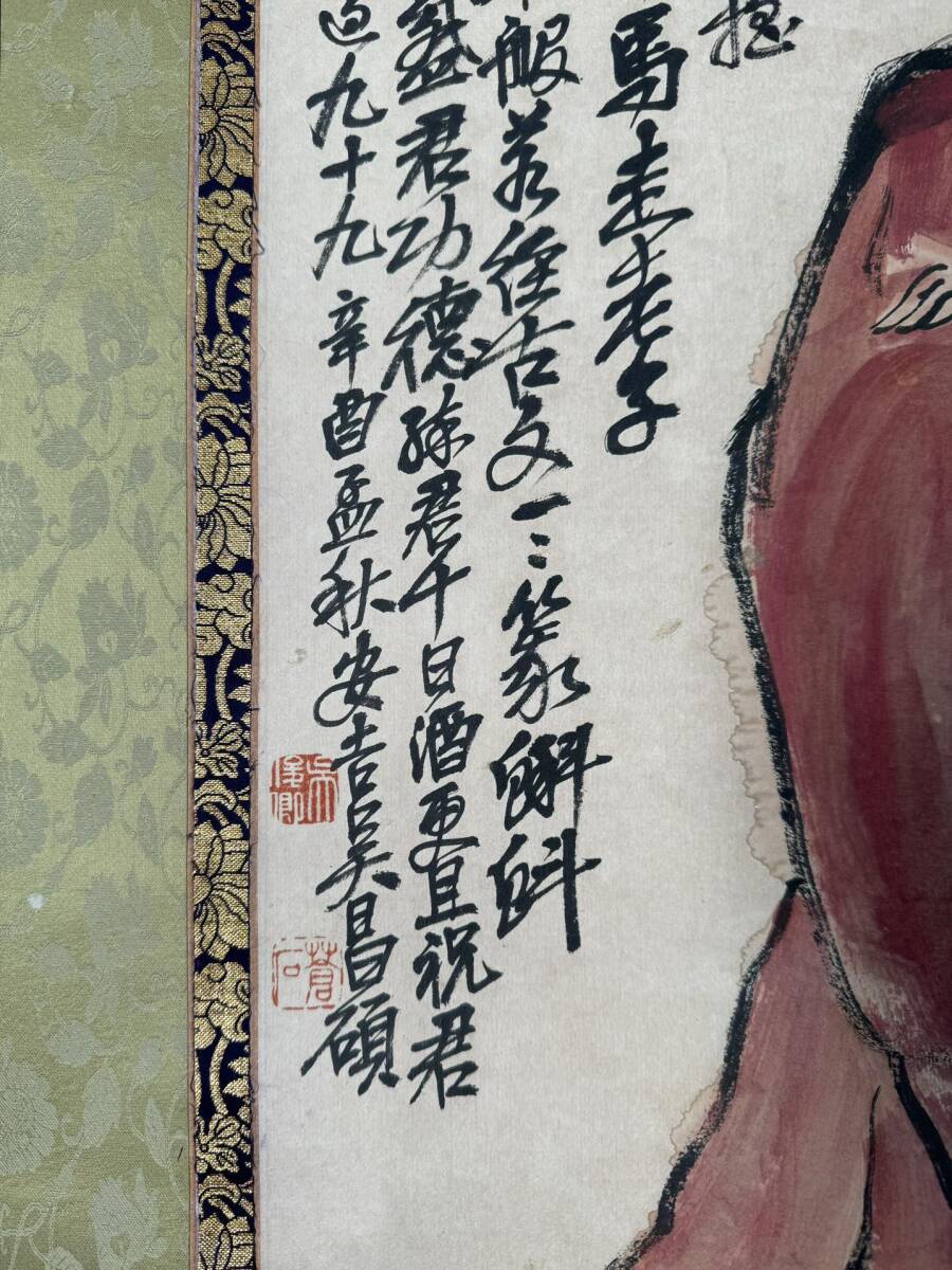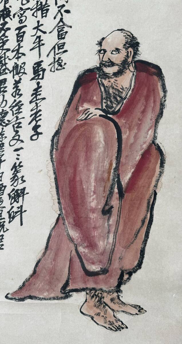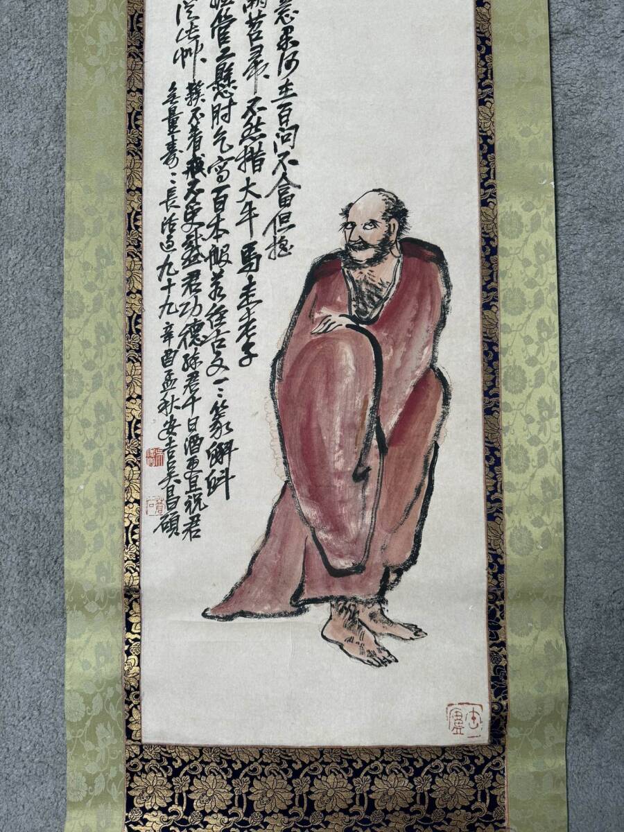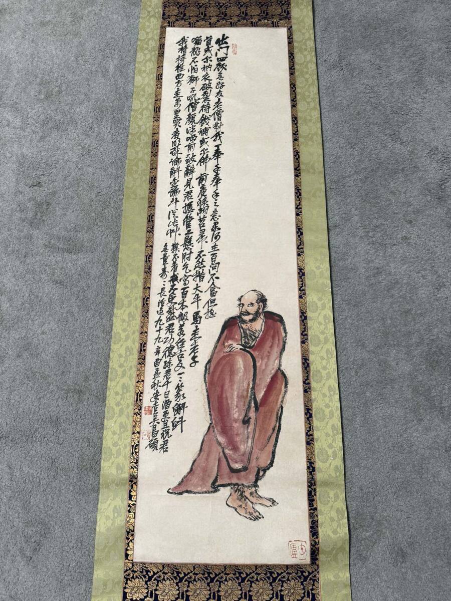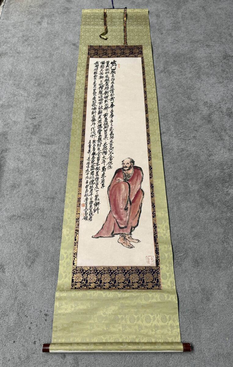 『東京株式会社』 旧家蔵出 中国画 古美術 [呉昌碩ダルマ図] 掛け軸 真筆逸品 肉筆保証 中心尺寸123X31cm ABC659