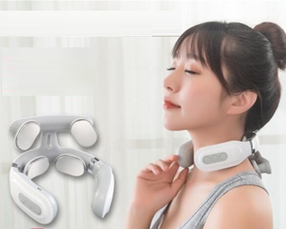 人気ネックマッサージャー マッサージ器温熱肩こり首 コードレス振動TENSパルス4個電極シート 健康グッズ 多機能 解消グッズ プレゼント