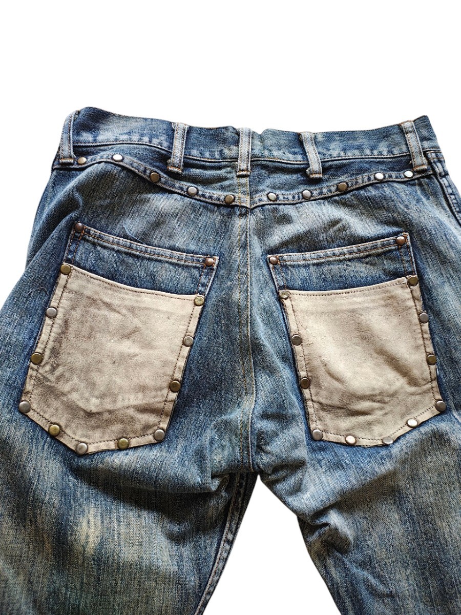 00s archive japanese label distressed denim with studs Y2K 14th addiction share spirit obelisk TORNADO MART ifsixwasnine goa kmrii