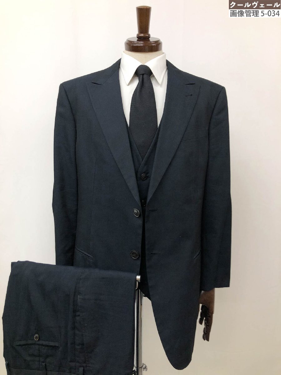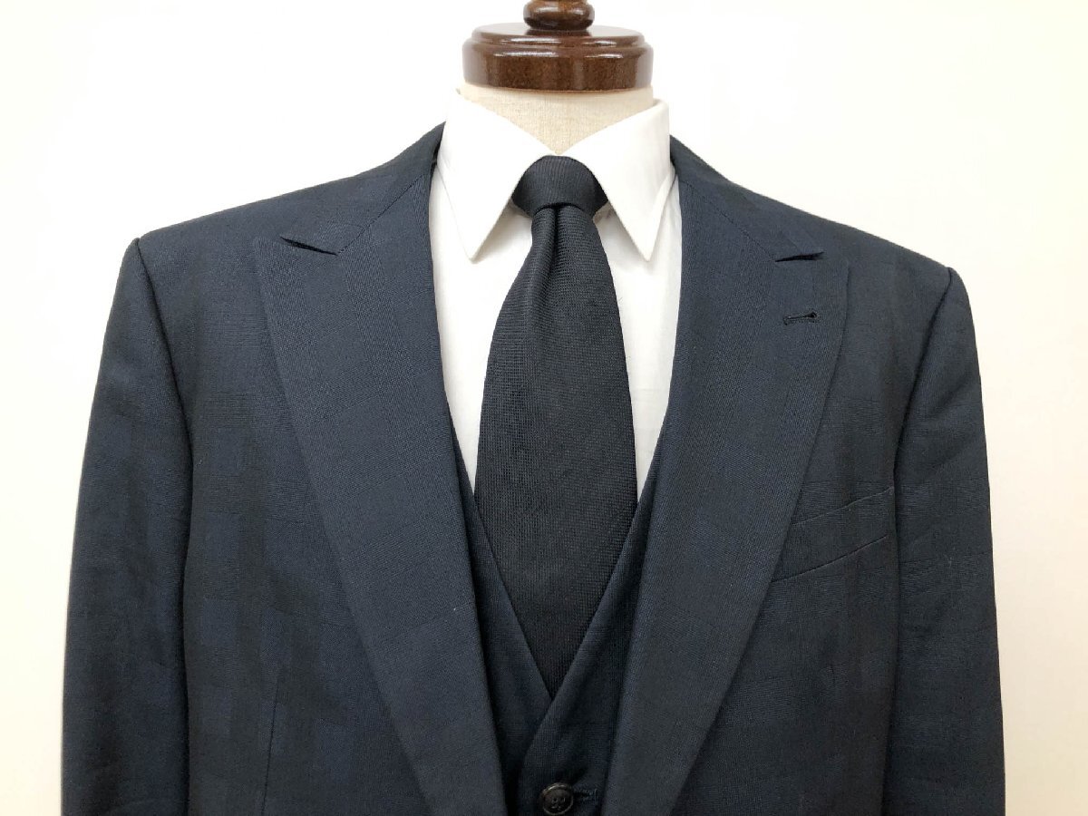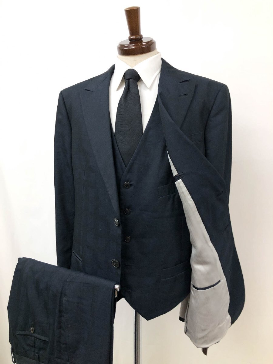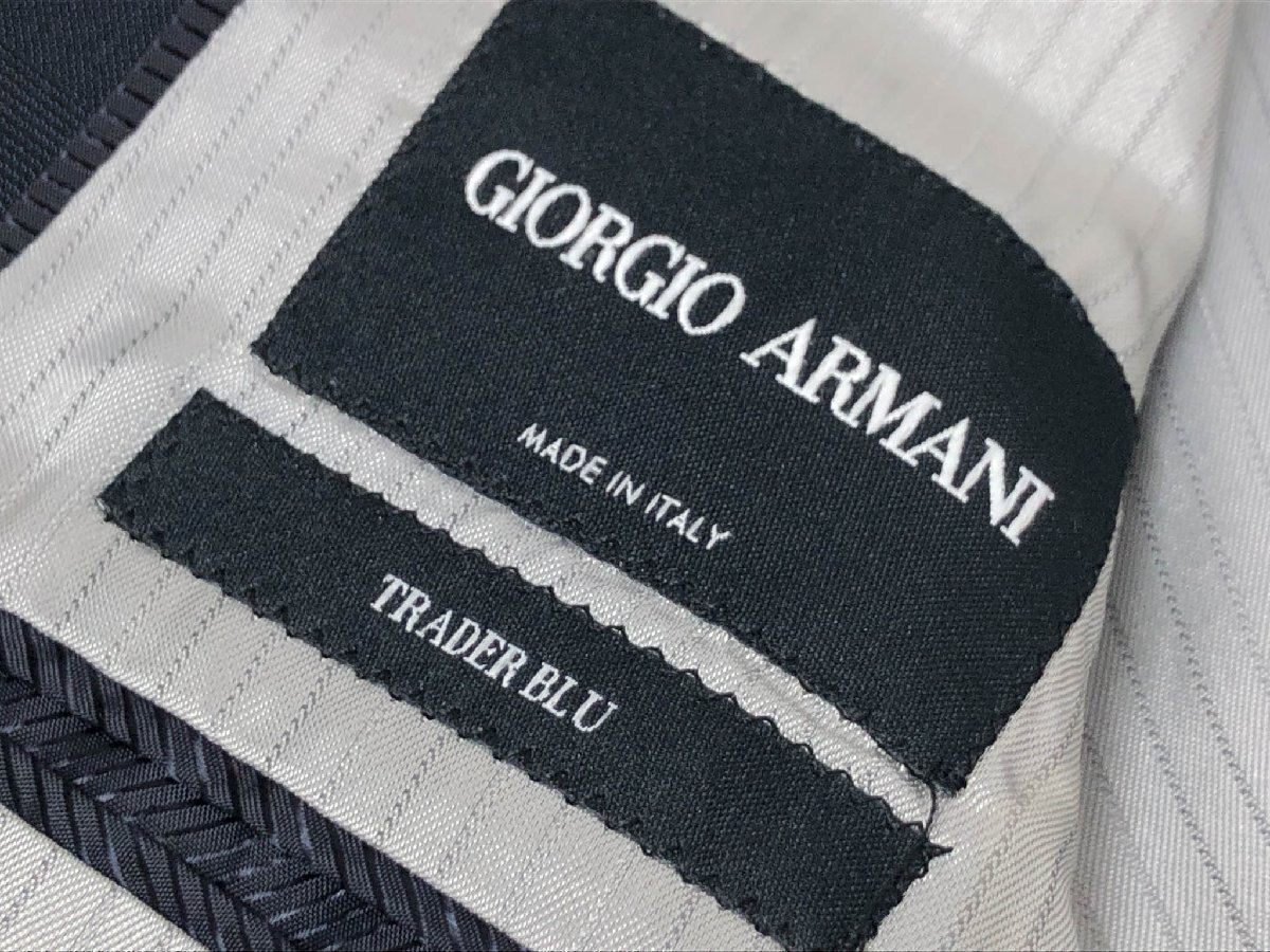 美品【GIORGIO ARMANI ジョルジオアルマーニ】最高級黒ラベル TRADERBLU 大きなサイズ 2B 3ピーススーツ (メンズ) 56 紺 織柄◇35RMS2019◇