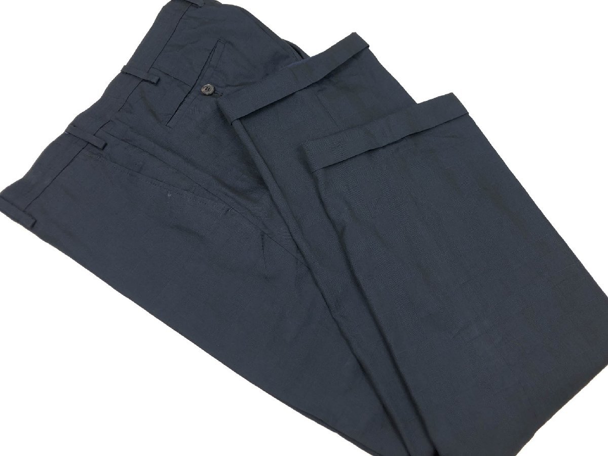 ・スラックス・・・ウエスト実寸約92センチ(4センチ出し、4センチ詰め可能)、股上約24~25センチ、渡り幅約37~38センチ、股下約74~75センチ、総丈約97センチ、裾幅約21.5センチ、裾はダブル仕上げ(ダブル幅3.5センチ、最大7センチ出しが可能です。)