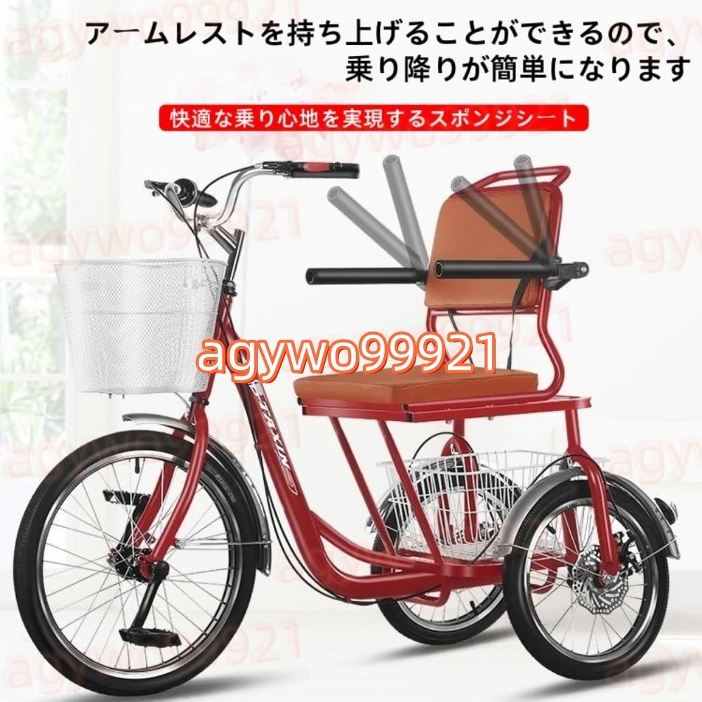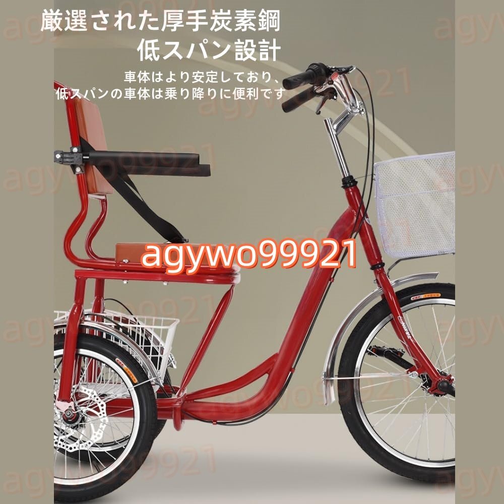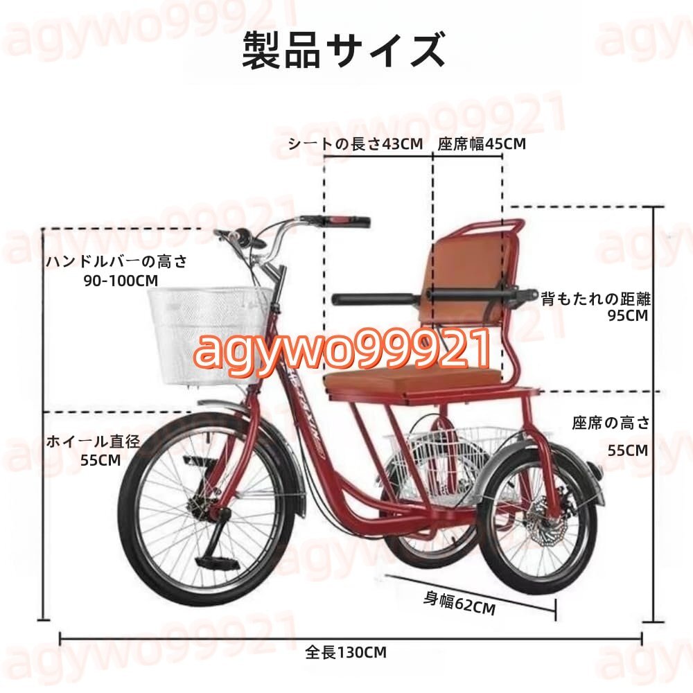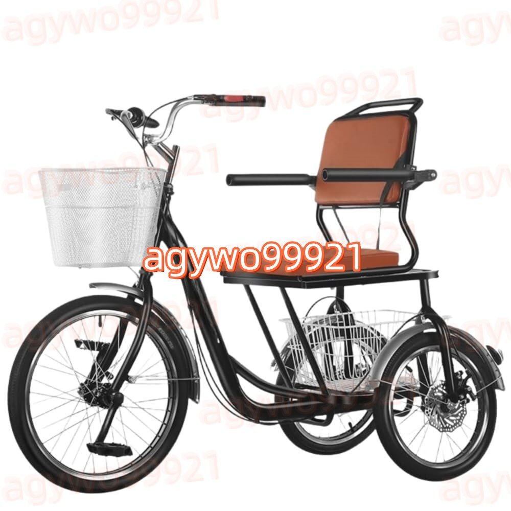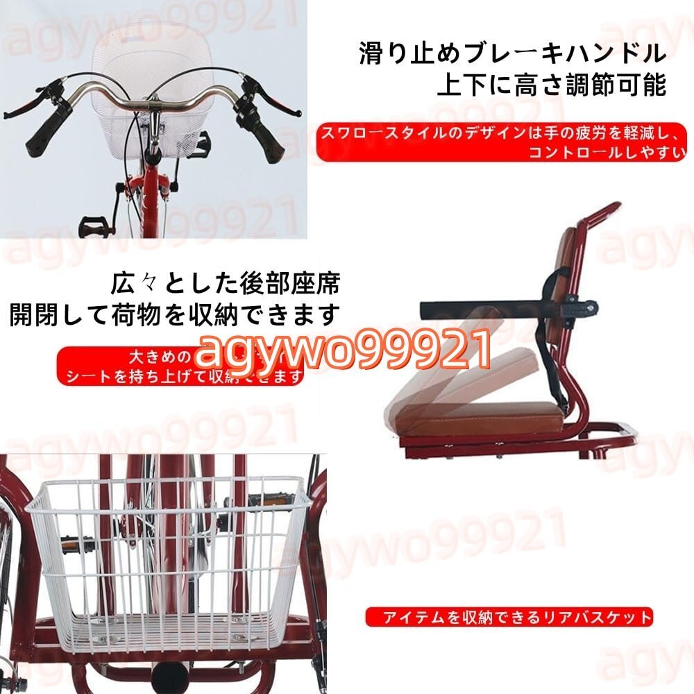 三輪自転車 大人用 高齢者用 クルーザー自転車 三輪転倒防止、 前ペダル 高炭素鋼フレーム 買い物かご付き 高さ調整可能 座面前後に調節 初心者 シニア向け パークライド 買い物