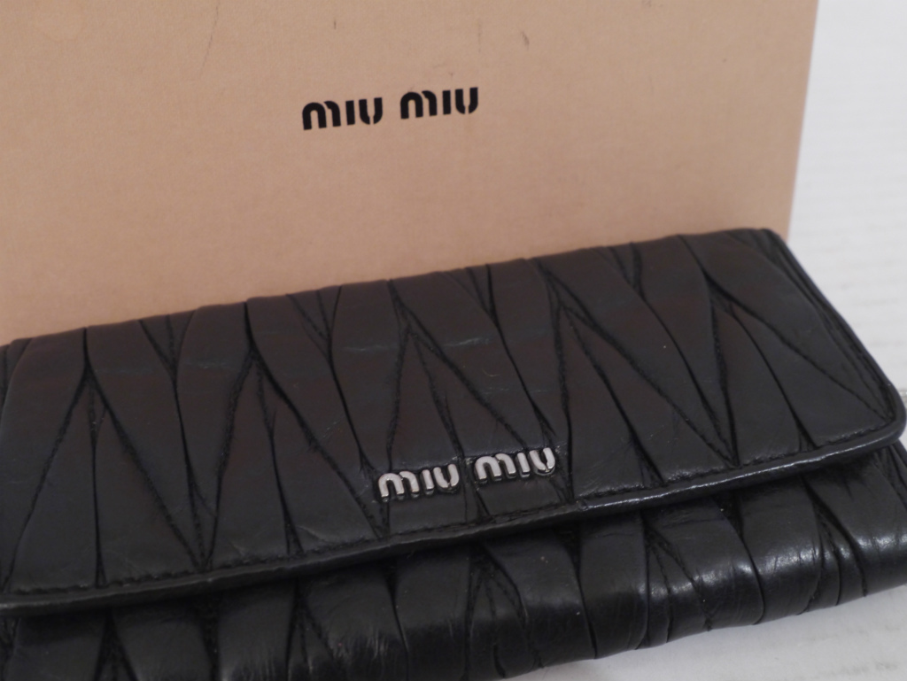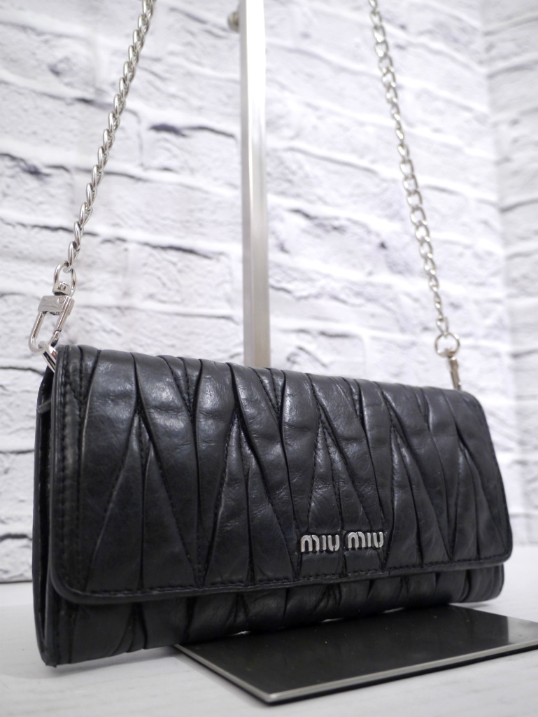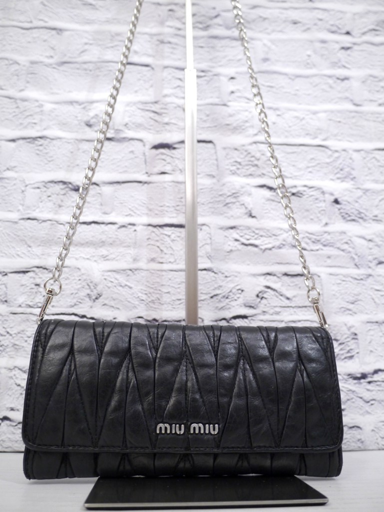 ◆miu miu ミュウミュウ MATELASSE マテラッセ クロスボディ ショルダー ウォレット バッグ ポシェット 黒x銀◆ クロスボディ仕様の定番♪