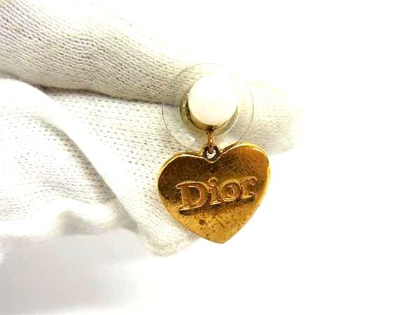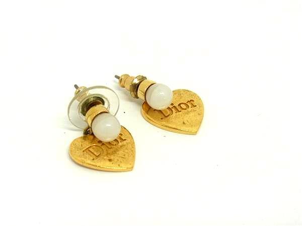 1円 ChristianDior ディオール ハート ピアス アクセサリー レディース ゴールド系×アイボリー系 GA4092