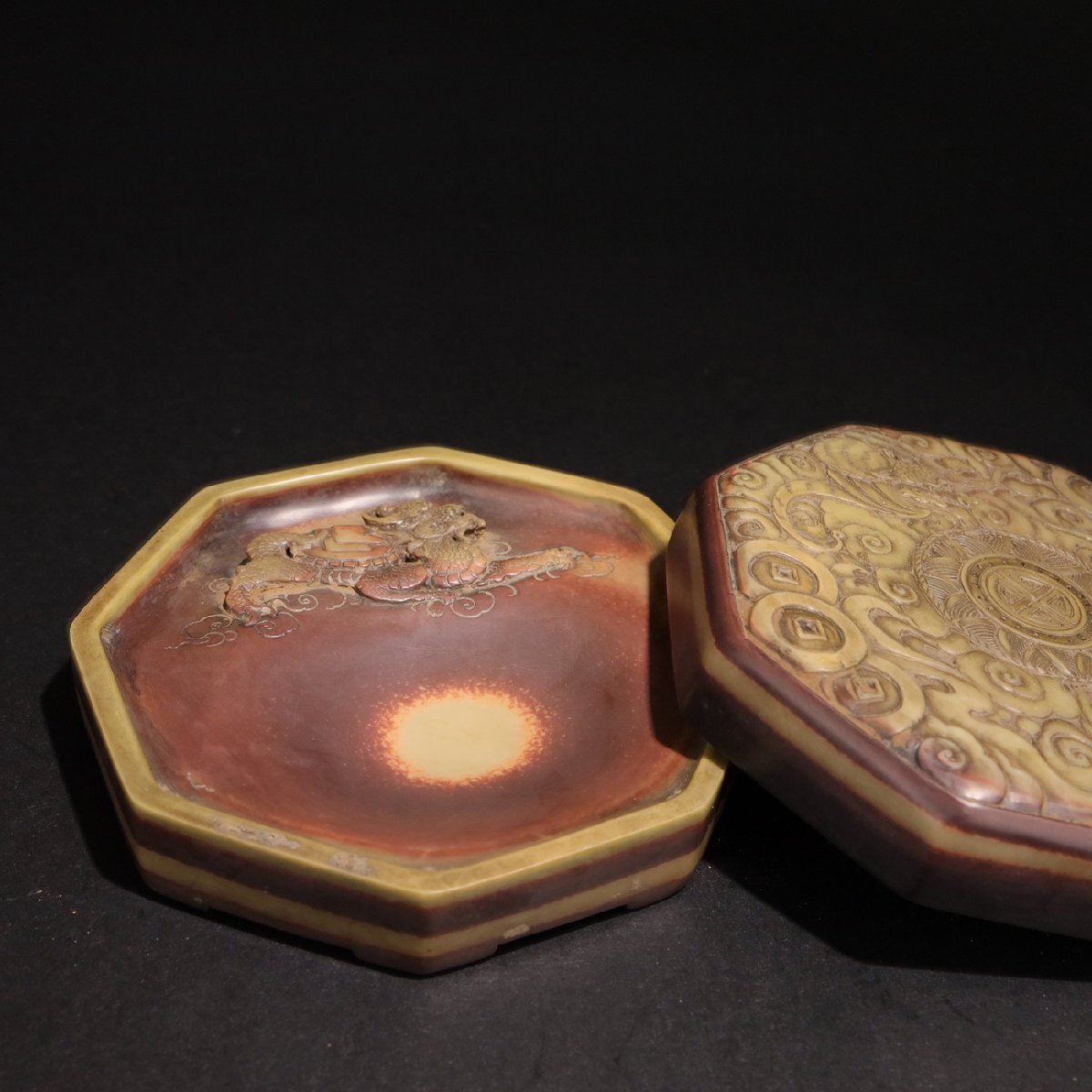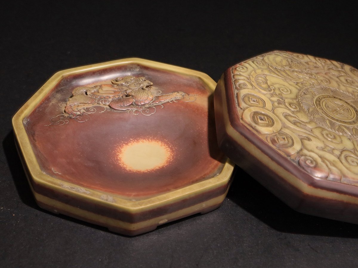 【安】清時代 汪中銘 紫袍玉帯石彫 福禄寿紋硯 蓋硯 書道具 文房具 極細工 中国古美術 古美味 時代物 古董品 256 サイズ(約寸) |