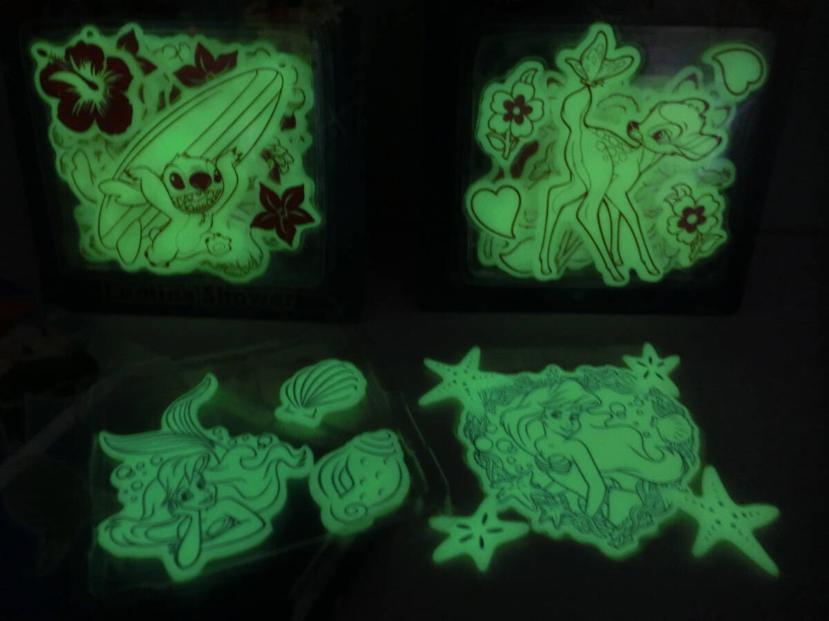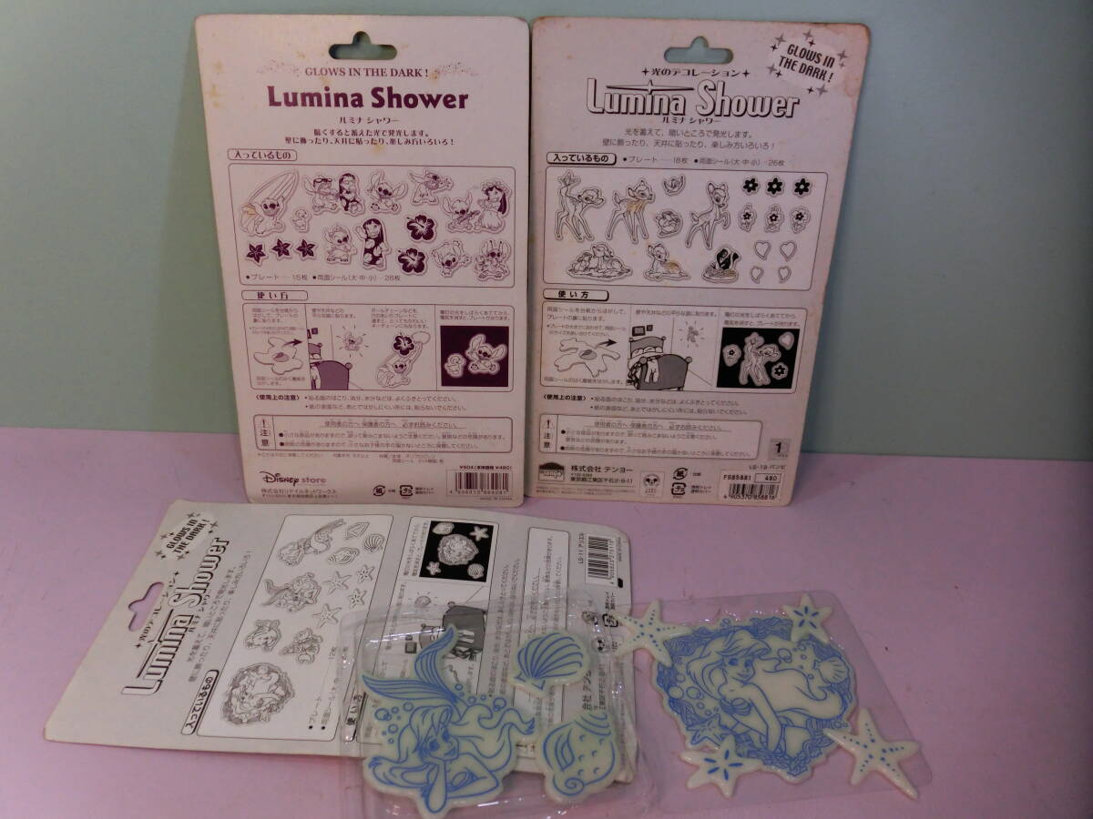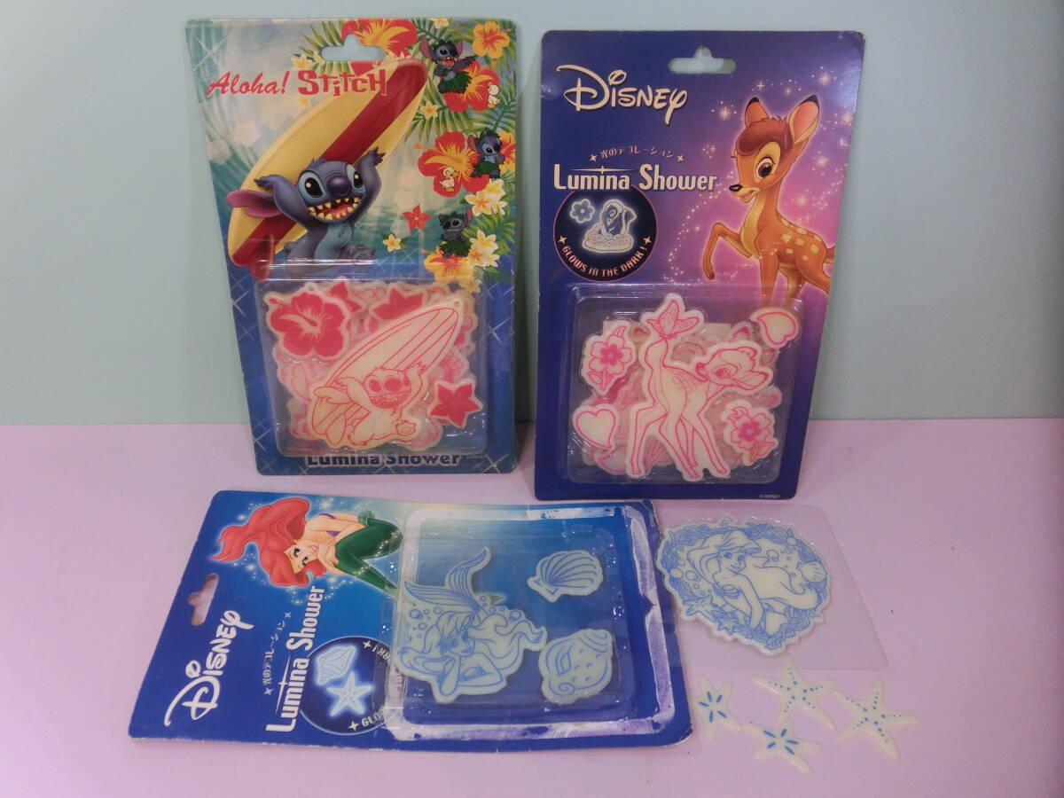 ディズニー リロ&スティッチ バンビ リトルマーメイド アリエル ルミナシャワー3点まとめて 光るデコレーション 蓄光プレート インテリア