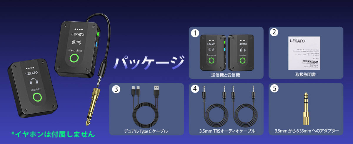 イヤモニ ワイヤレス システム 低遅延 モノラル切替 充電式 送信機&受信機セット