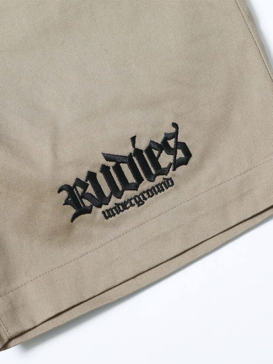 フロント・バックに刺繍を施したワークショーツ。シンプルながらも存在感のあるベーシックな仕上がりです。