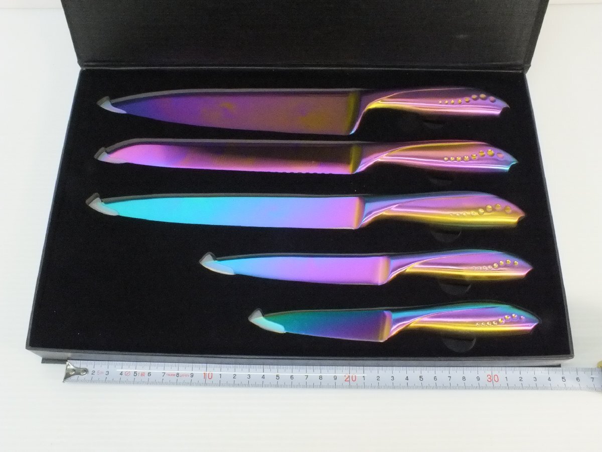 (美品)キッチン ナイフ 5点セット レインボー 包丁 虹色(柏)