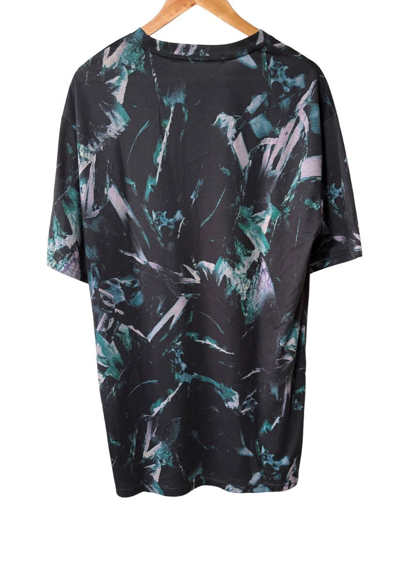 氷山をモチーフにした独創的な総柄が目を奪う、NO ID. BLACK(ノーアイディー ブラック)の「アイスバーグプリント ロングBIG-T」です。深いグリーンとクールなブルー、シャドウのようなブラックのコントラストが、まるで氷河の割れ目を覗くようなアーティスティックな世界観を作り上げています。
