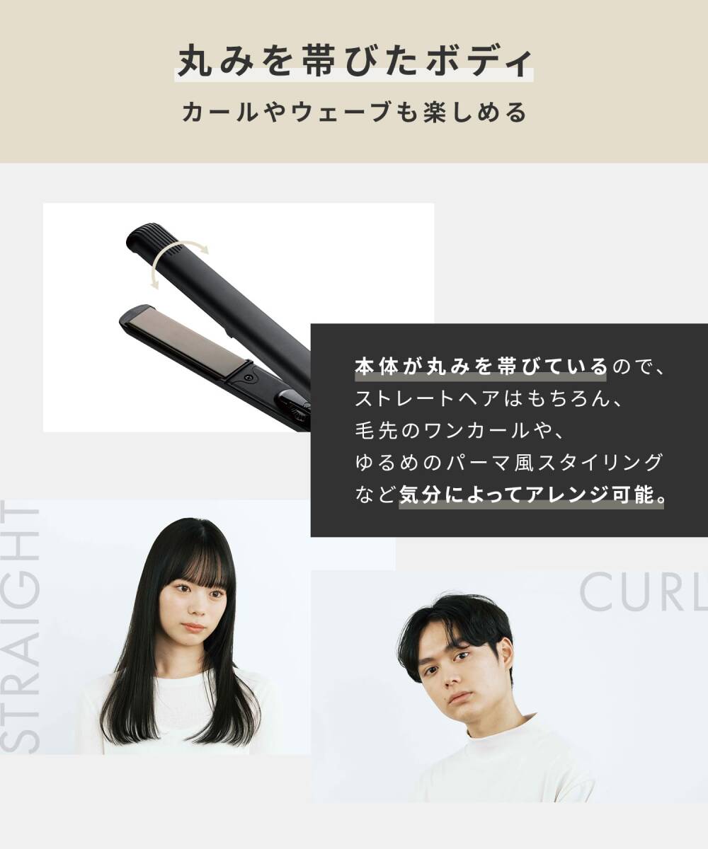 • 【セラミックコーティング・クッションプレート】髪に優しいセラミックコーティングプレート採用、摩擦によるダメージから守ります。簡単にスタイリングでき、初心者にもオススメ。髪に熱をやさしく素早く伝えるセラミックコーティングです。髪に密着しやすくやさしくはさめるクッションプレートです。スタイリングしながらダメージを軽減できます。