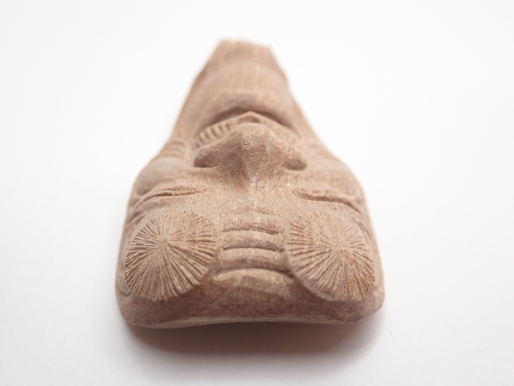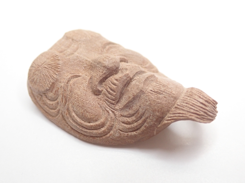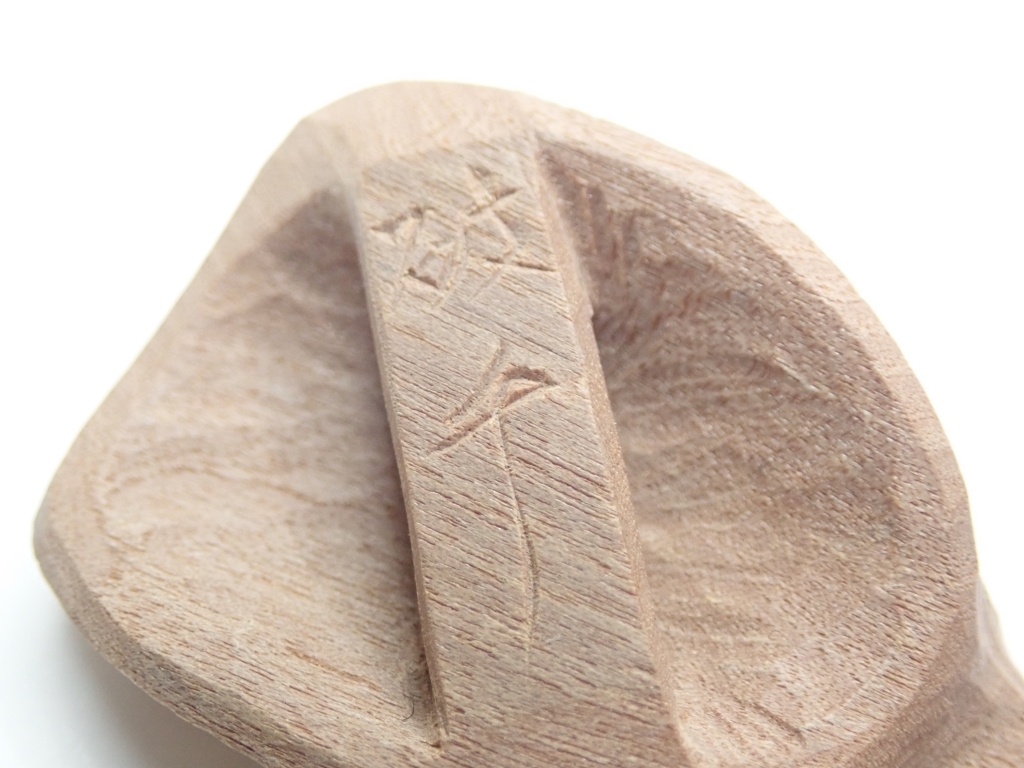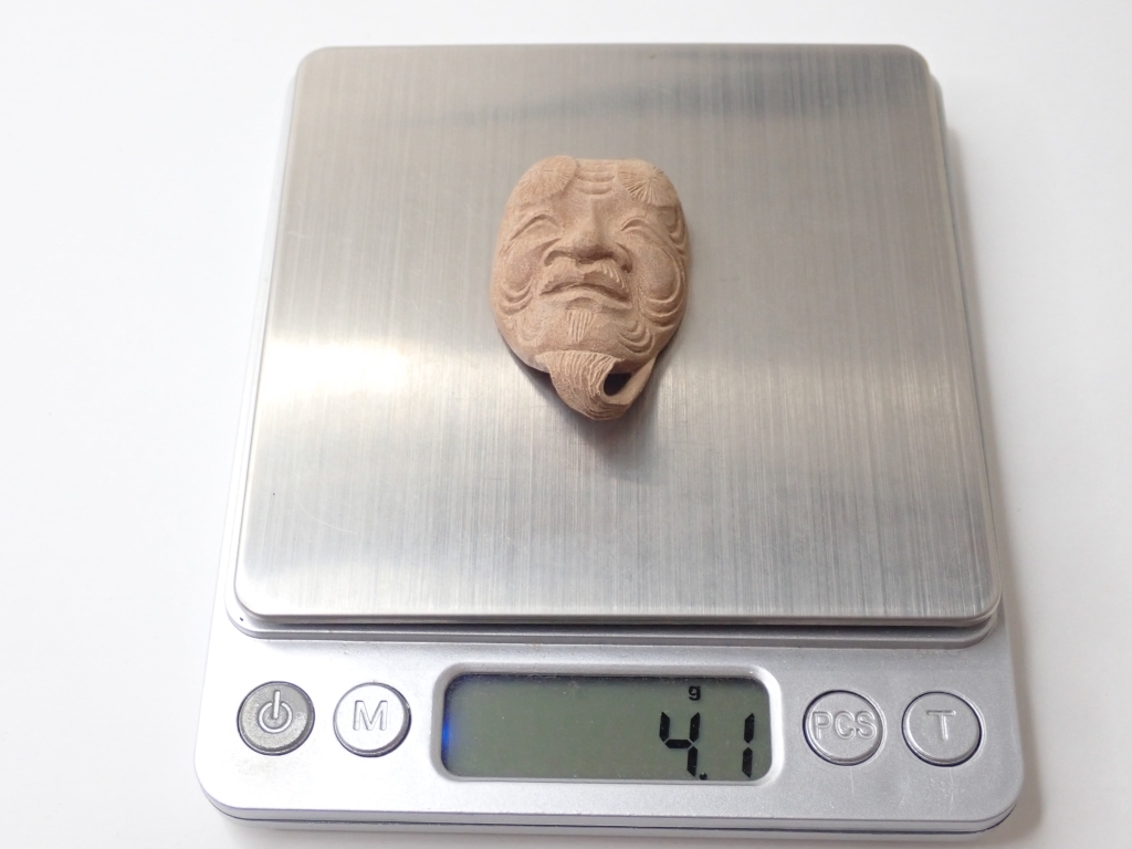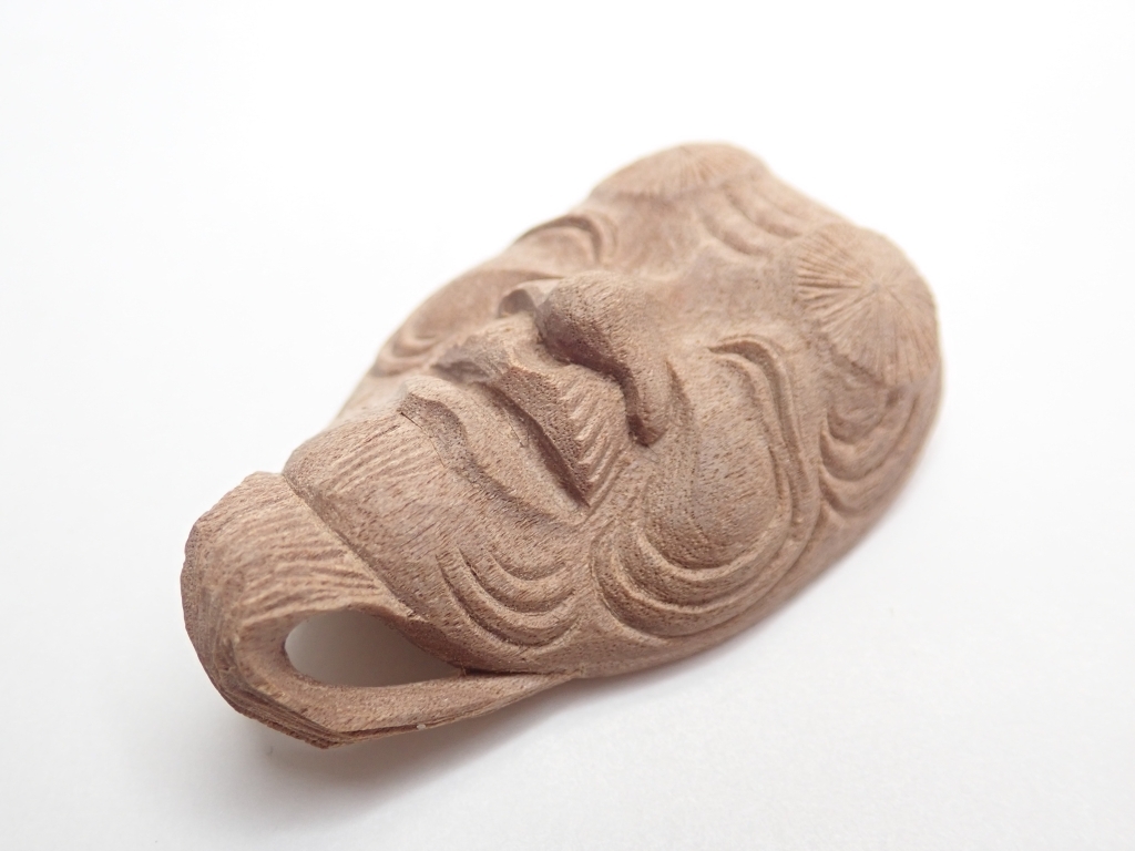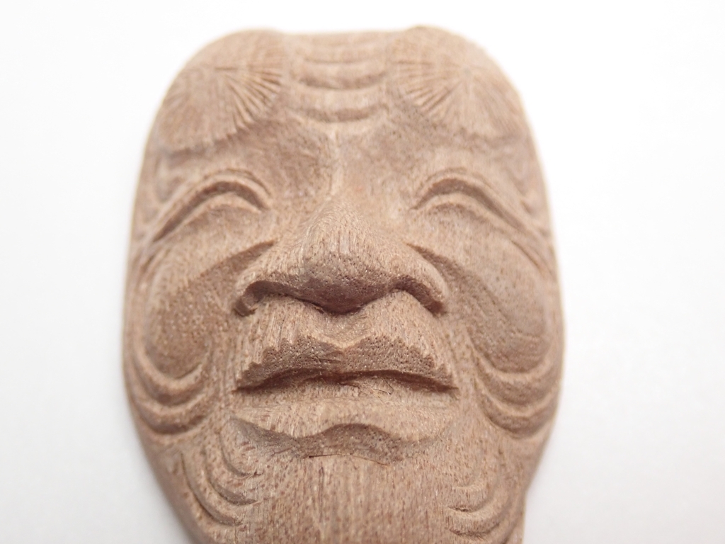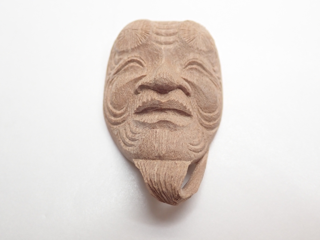B441 帯留め 木製彫刻 翁 能面 在銘 作家物 木彫り 紐通し 和装小物/レトロ/着物 Japanese Kimono Jewelry