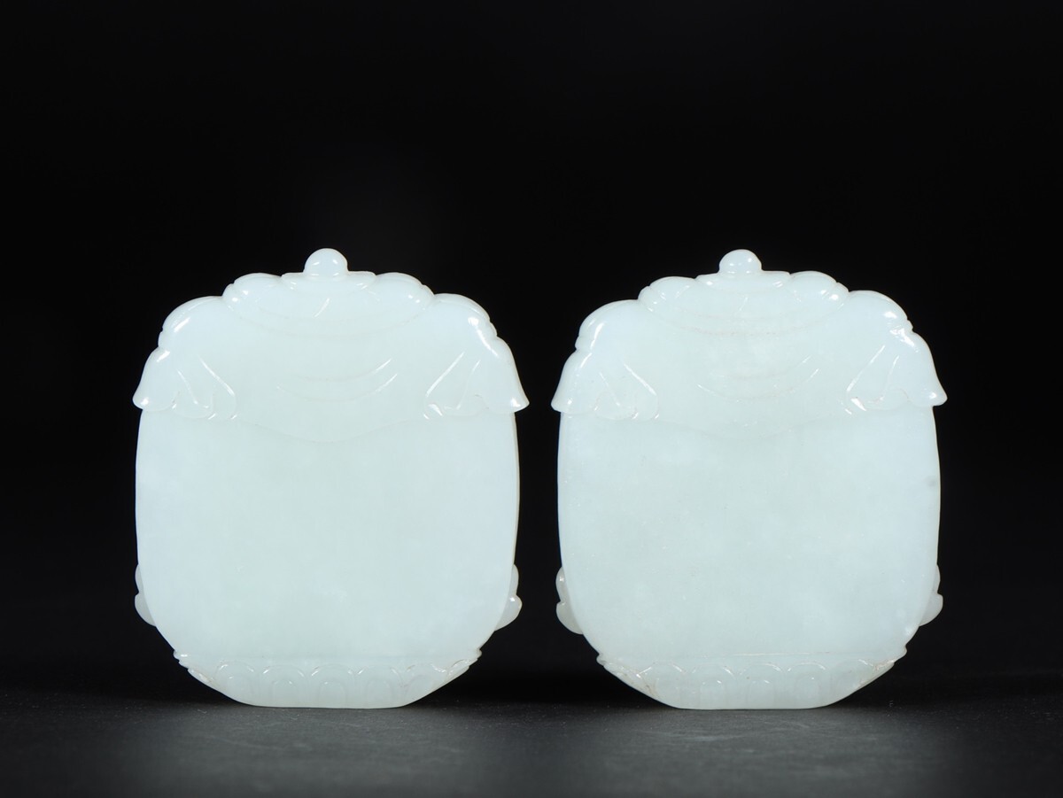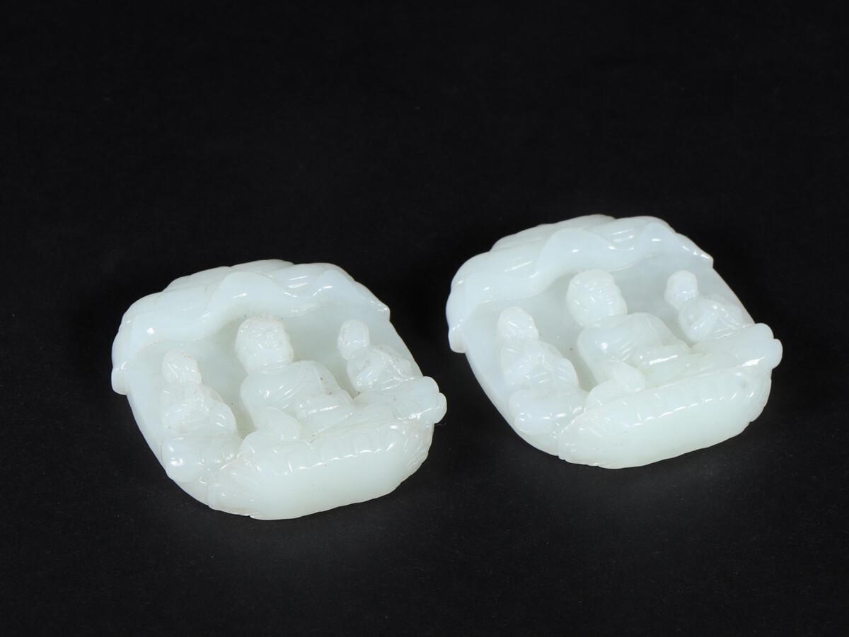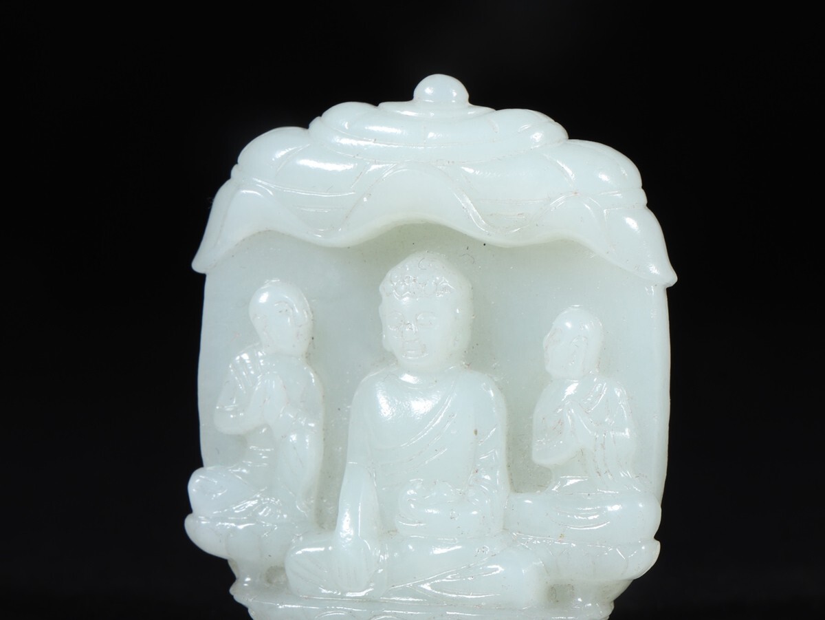 【瓏】和田玉 白玉彫 三聖仏 掛佩一対 清時代 極細工 手彫り 置物 裝身具 賞物 中国古美術 蔵出