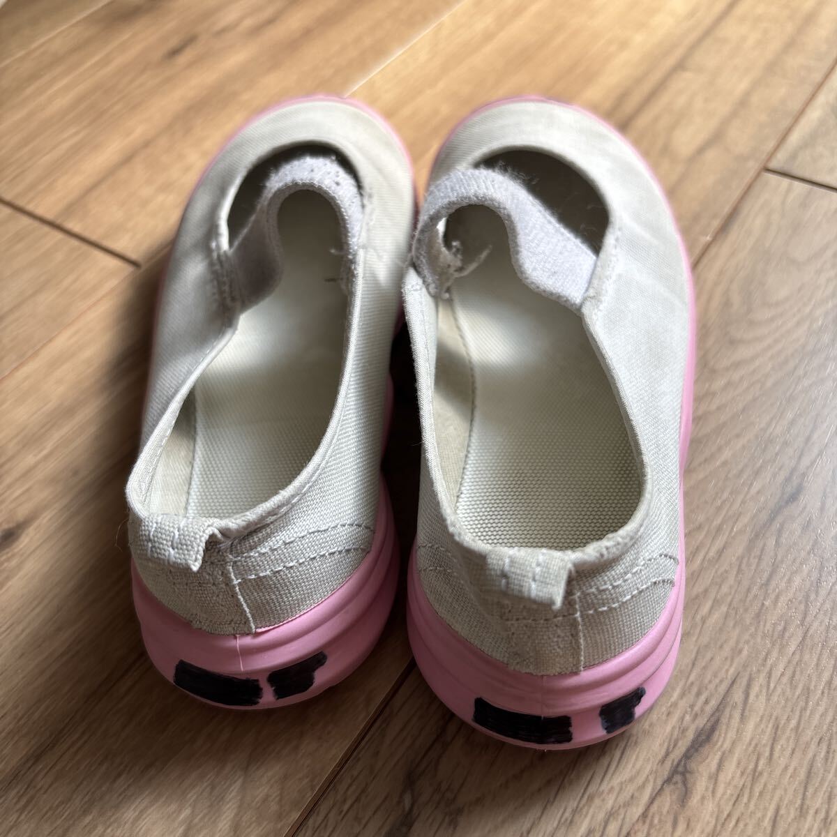 サイズアウトしてしまいましたがまだ履けますので、どなたかいかがでしょうか?記名部分は、ワッペンなど貼っていただければ可愛いかと思います。