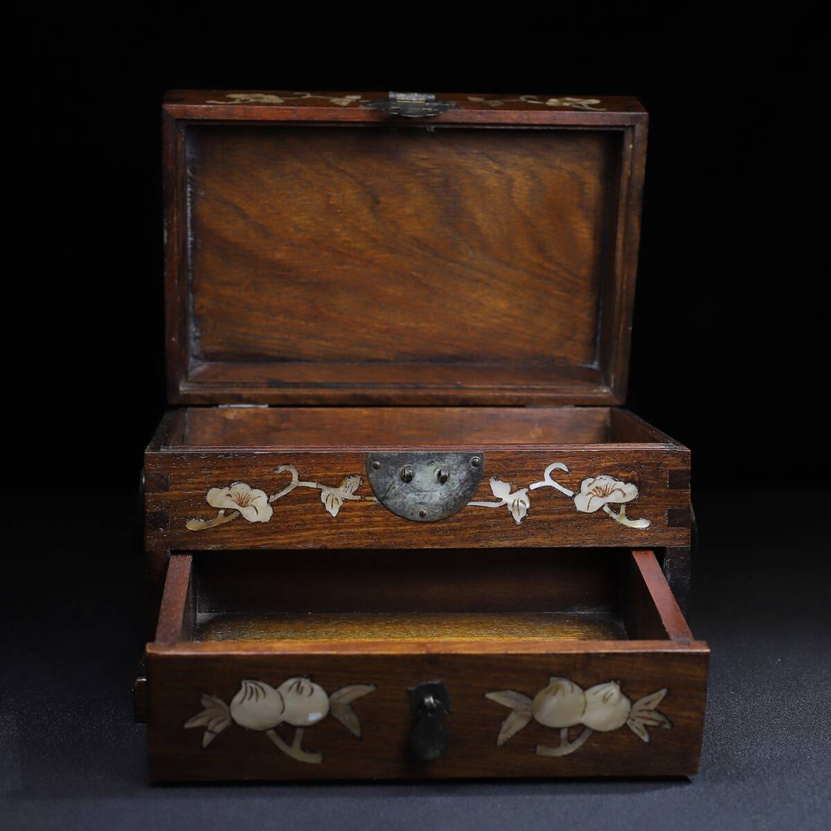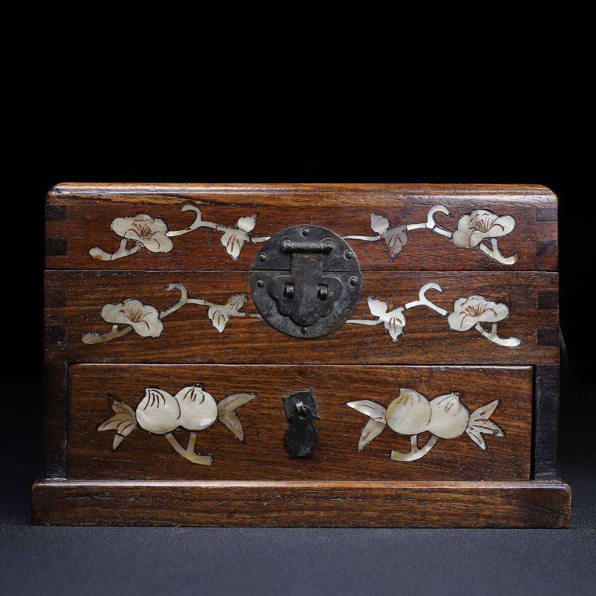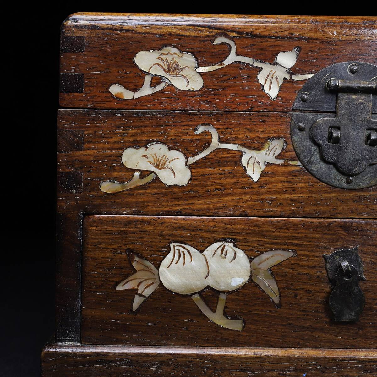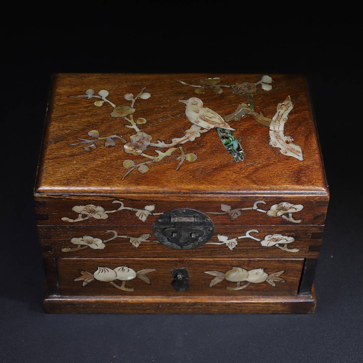 *珍品旧蔵* 清 花梨木 はめ込む貝殼 一引き出し 多寶盒 木製 極細工 中国古玩 骨董品 古美味 H48