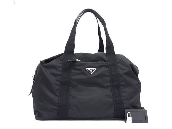 1円 PRADA プラダ テスートナイロン ボストンバッグ トート ショルダーバッグ 肩掛け 旅行かばん メンズ レディース ブラック系 FL6614