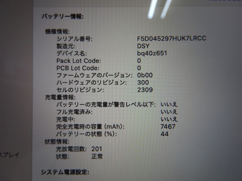 (各部ランク) ■液晶部:Bランク ※キーボード接触痕 ■天板:Bランク ■キーボード部、パームレスト部:Bランク ■その他外装:Aランク ■バッテリー:Bランク |