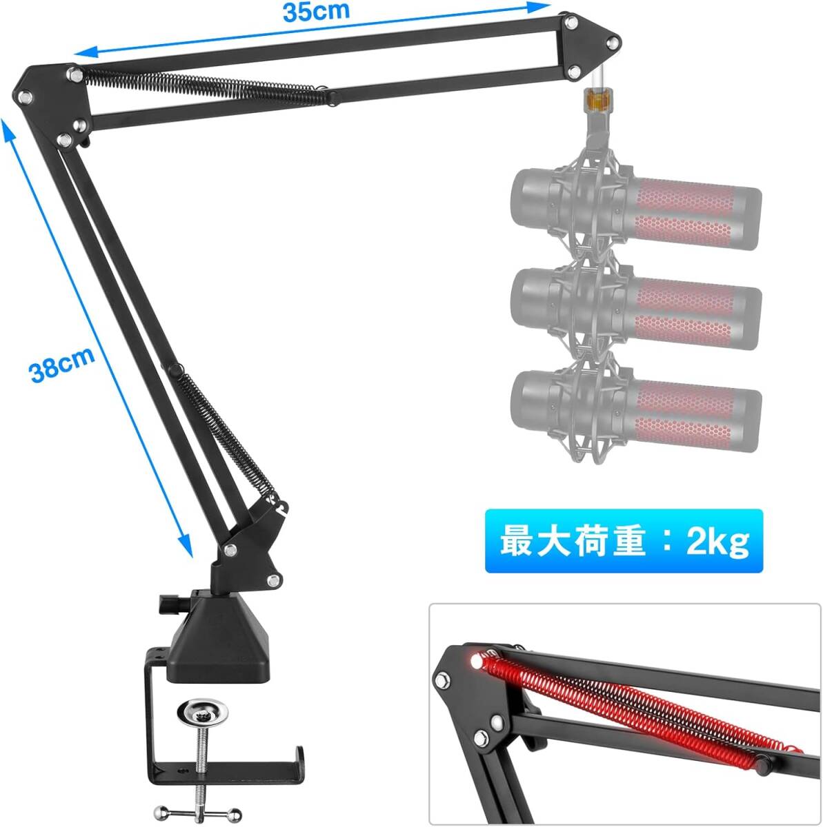 【安定性】このマイクブームアームは、各アームに高品質のデュアルサスペンションスプリングを備えており、HyperX QuadCast Sマイクを震動、沈み込みから保護し、騒音の発生を防ぐことができます。