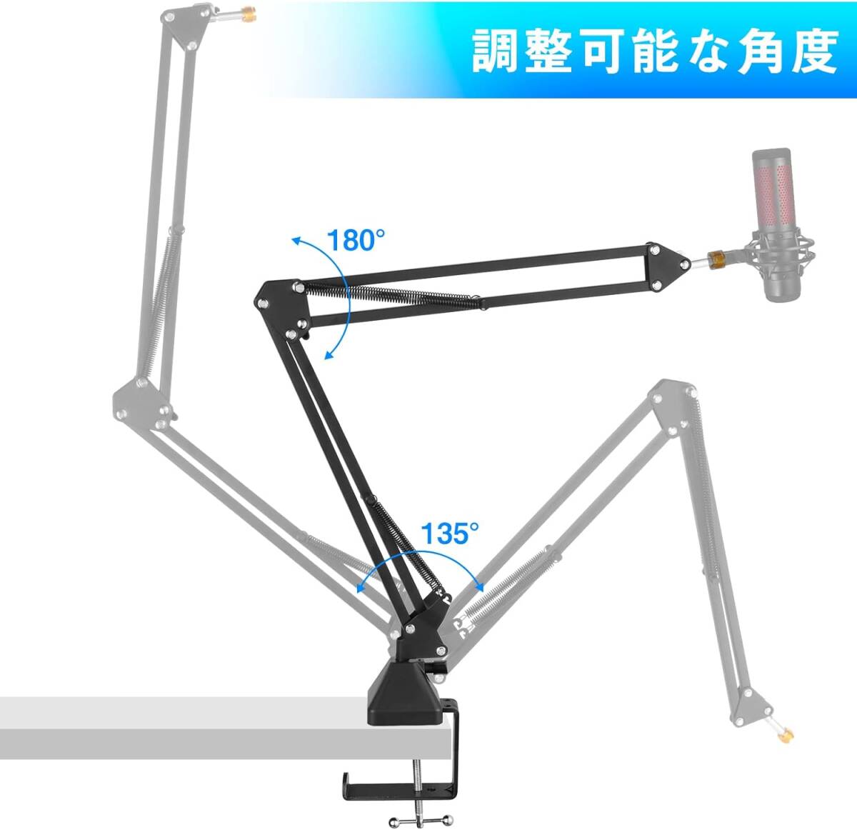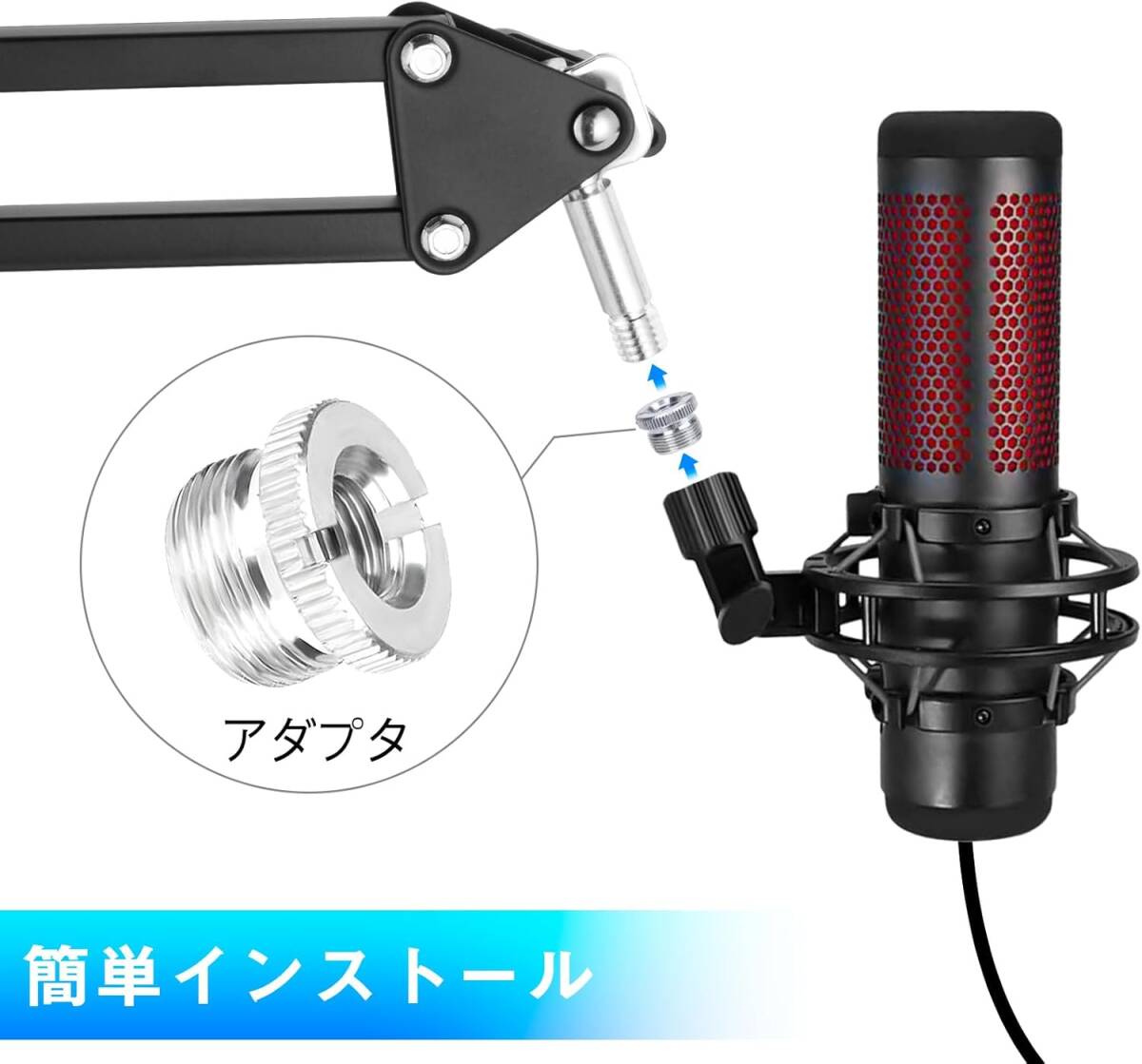 【幅広い互換性】調整可能なマイクアームスタンドには、さまざまなショックマウントやマイクに適用する標準の3/8 ""から5/8""のアダプターが付属しています。 (注:マイクは含まれていません。)
