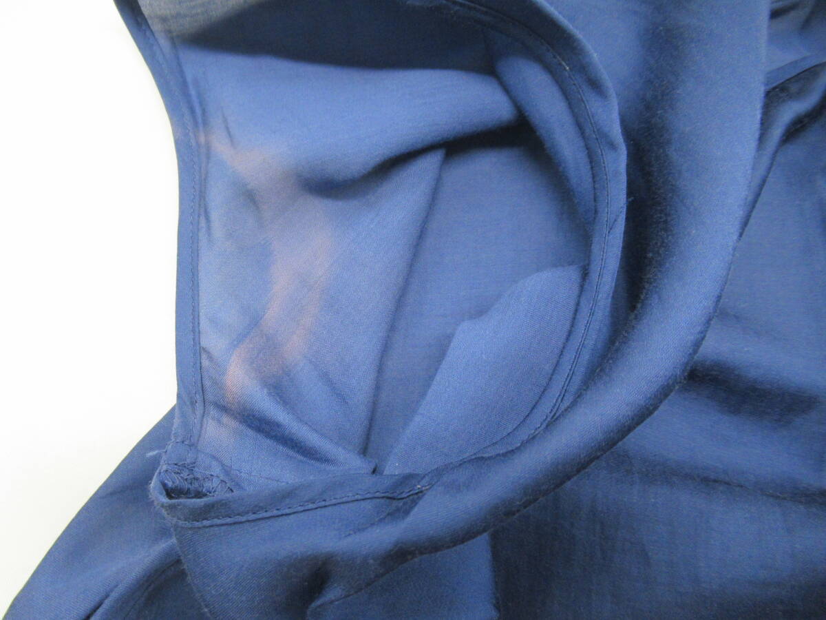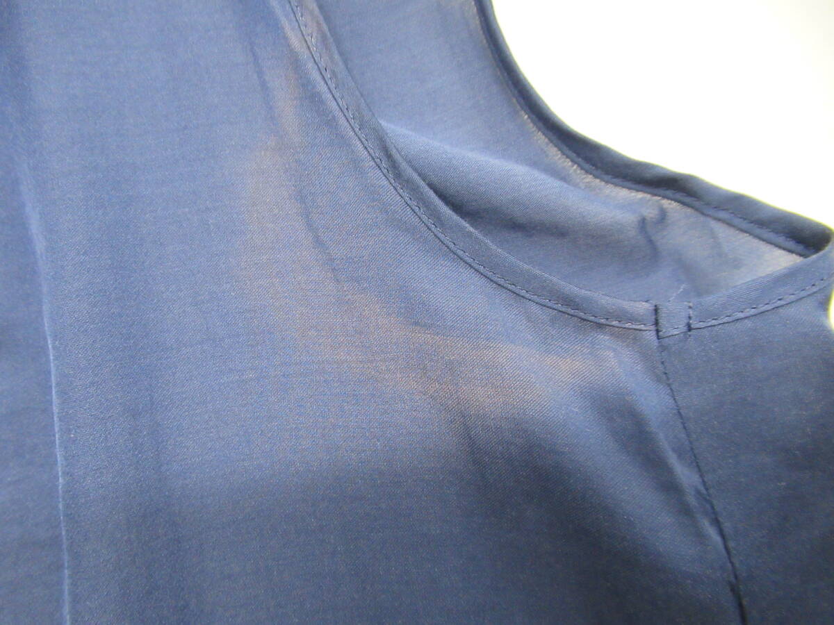 程度:脇の汗シミ、変色(内側も)がございます。また背面下部にシミがございます。