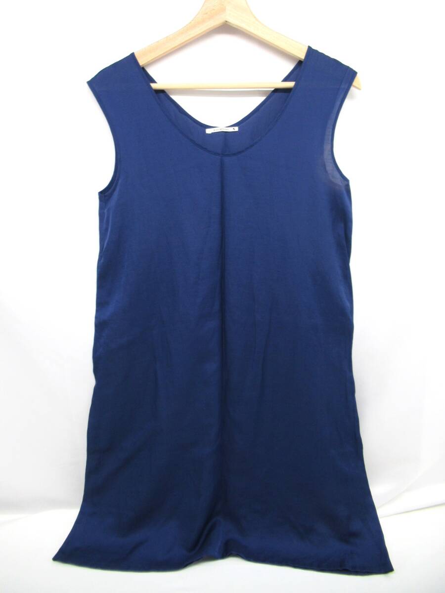 【送900円】276 mina perhonen ミナペルホネン hana hane ノースリーブワンピース 膝丈 シアー 綿混 ネイビー 36