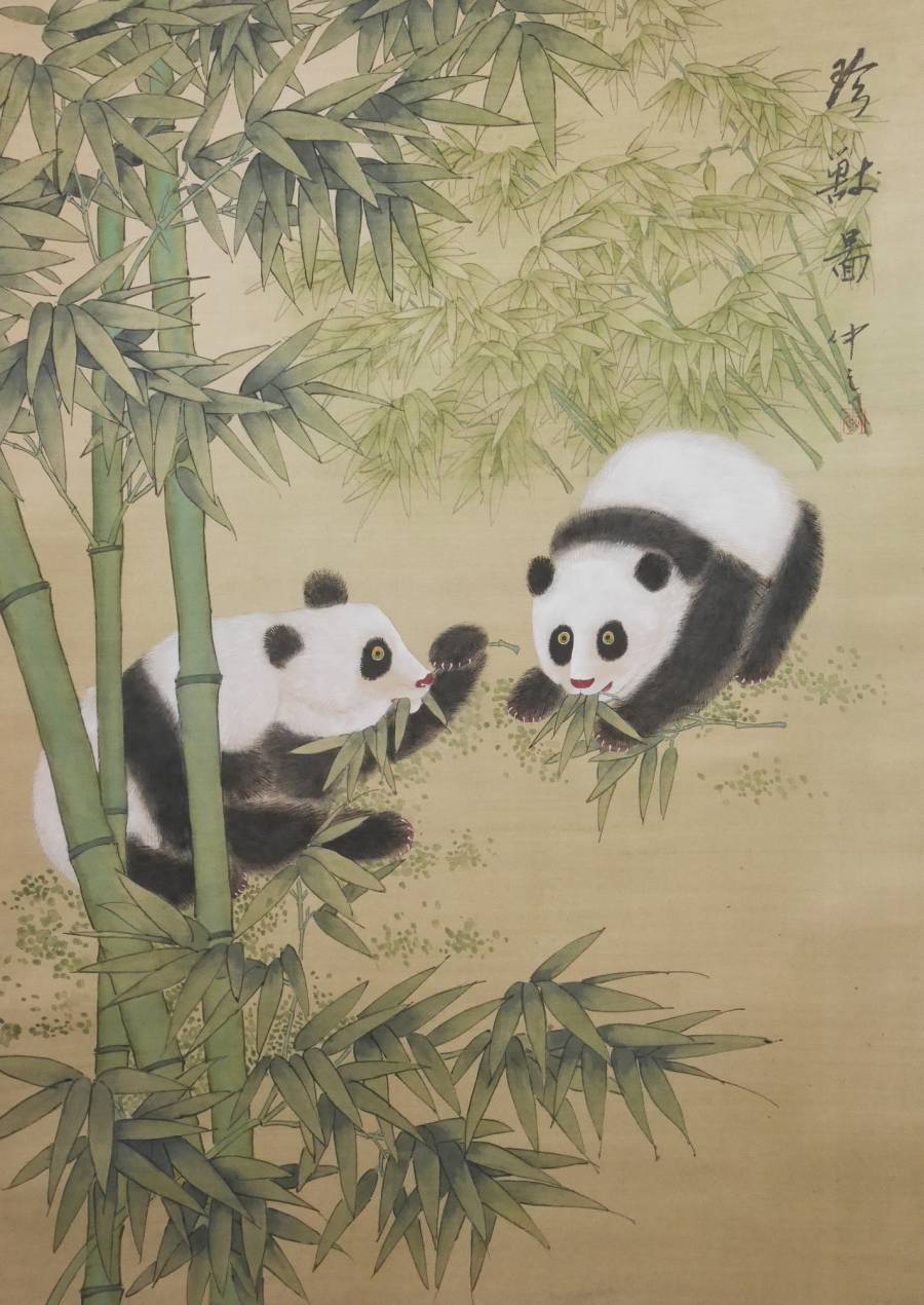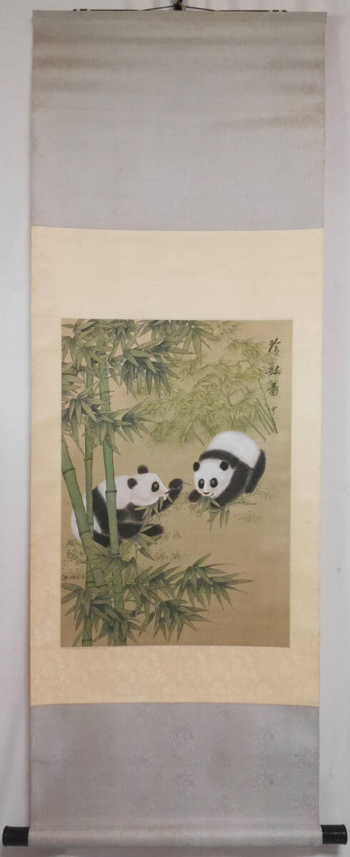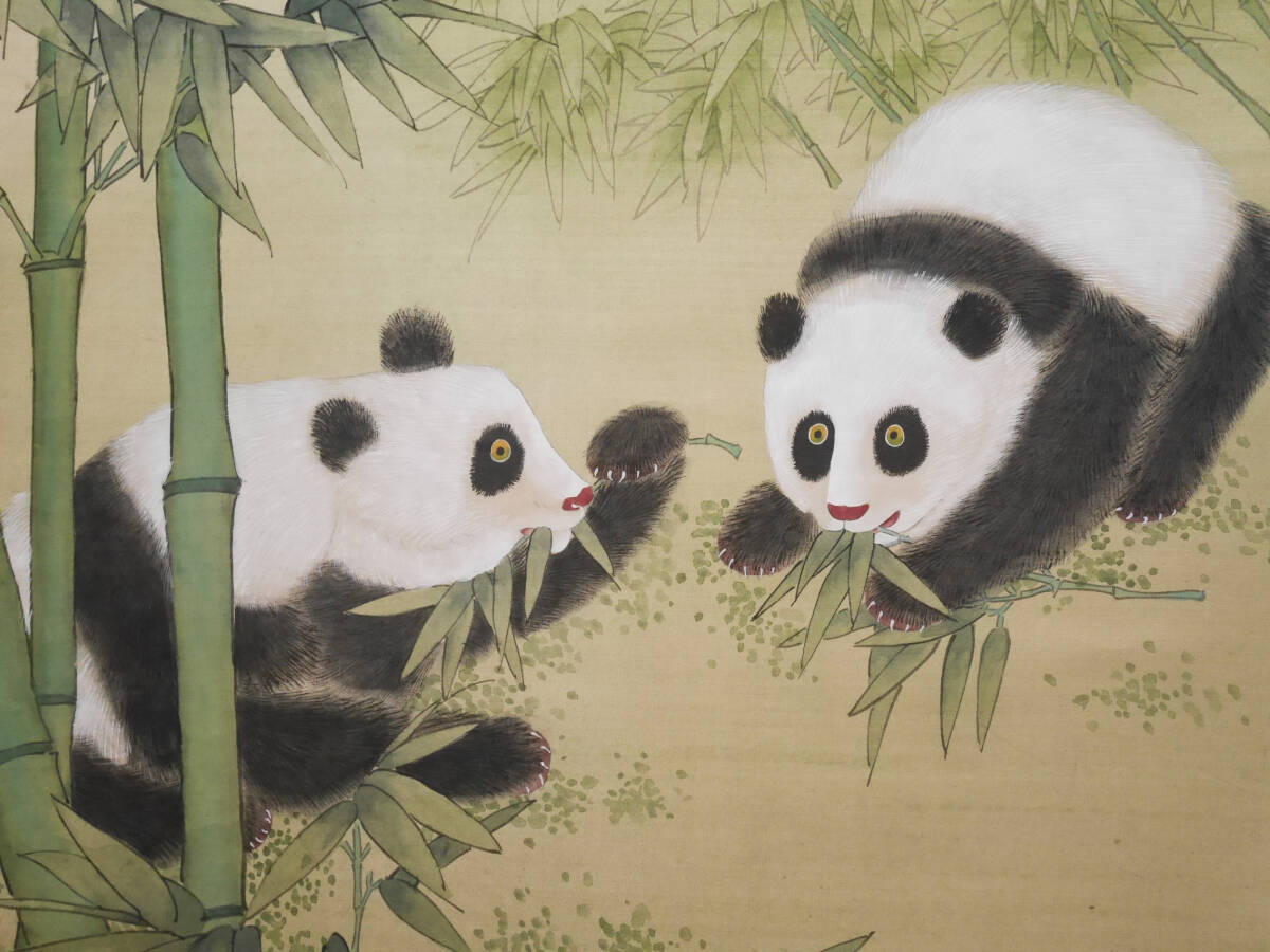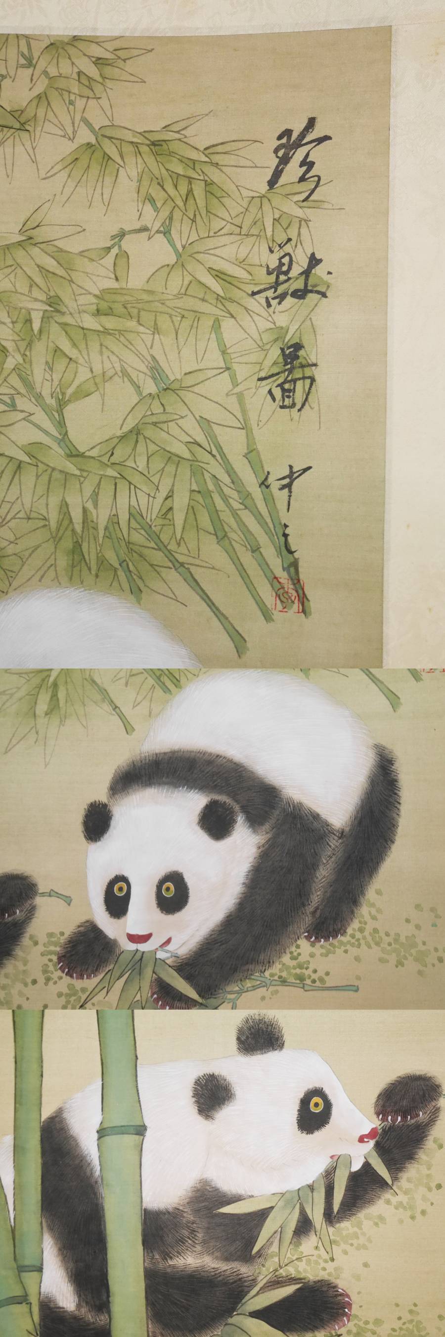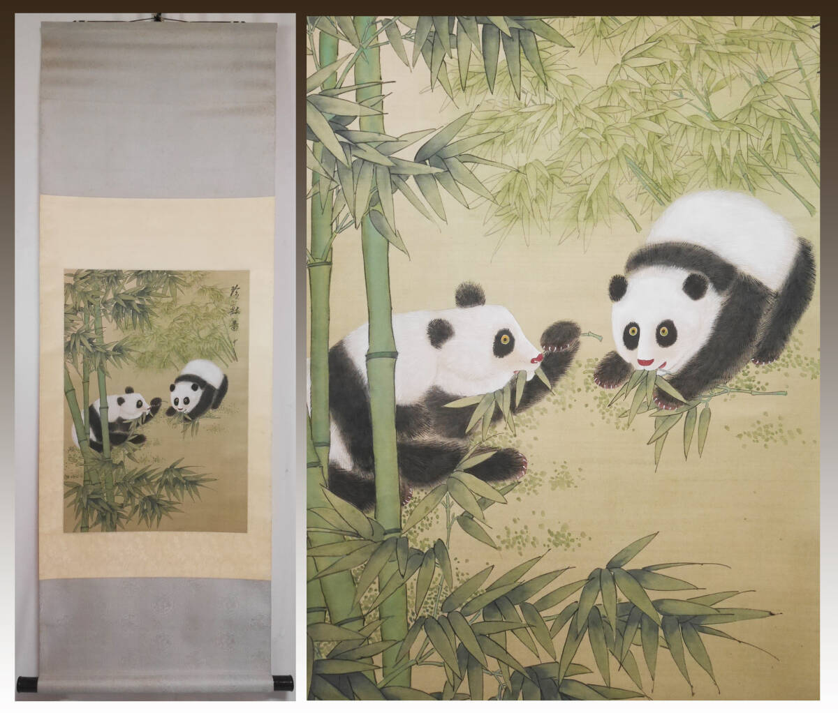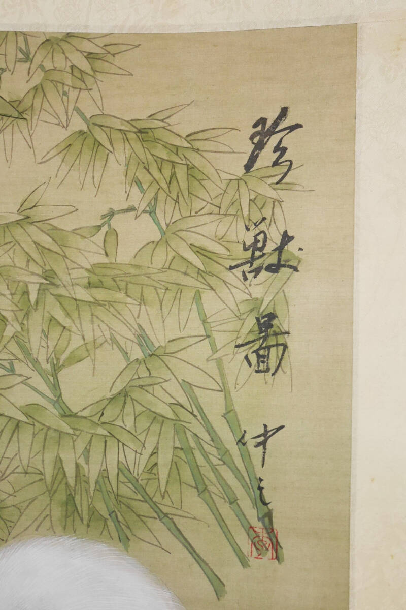 【作家不明】★【竹にパンダ 珍獣図】◆中国美術 絹本 肉筆 花鳥 鳥獣 動物 掛軸