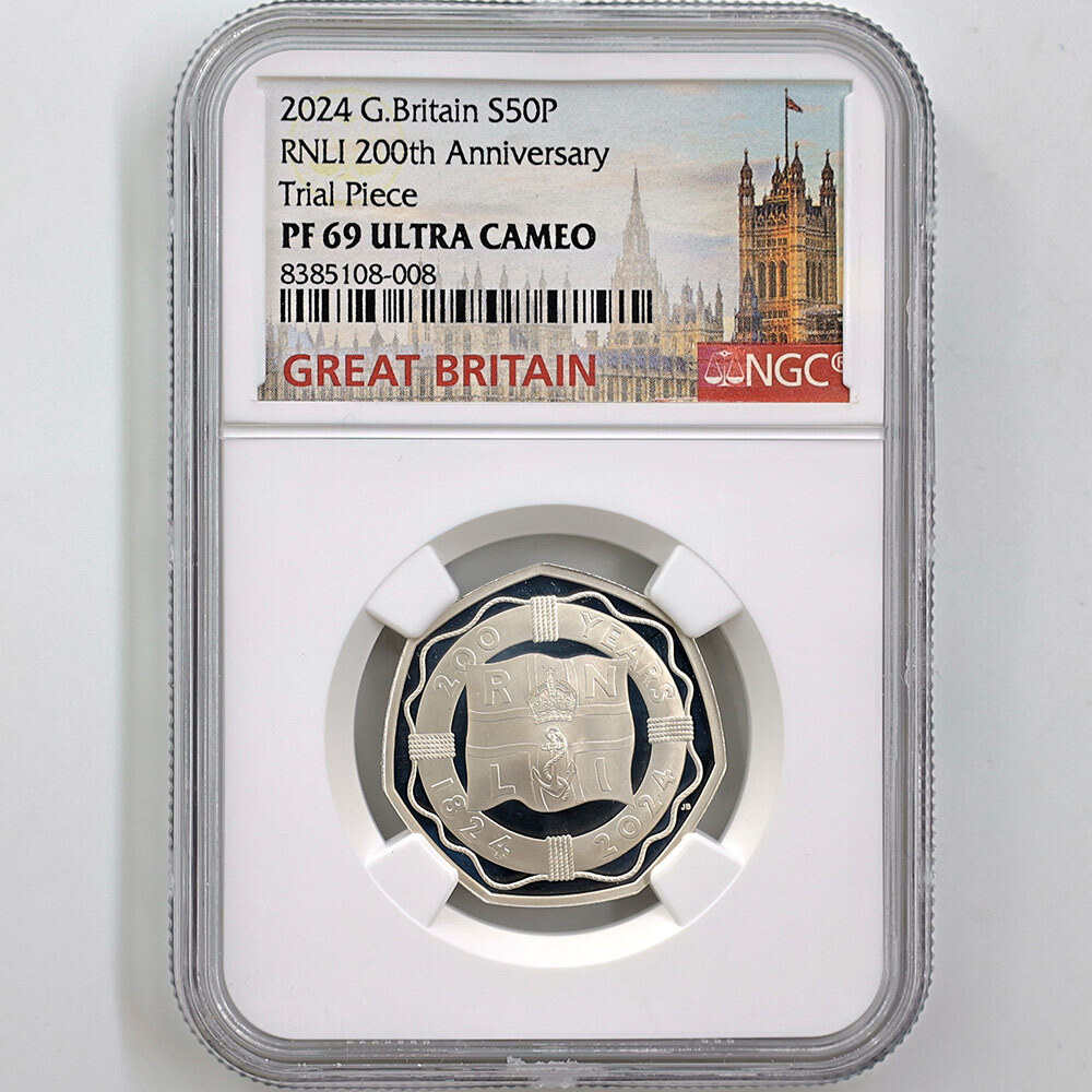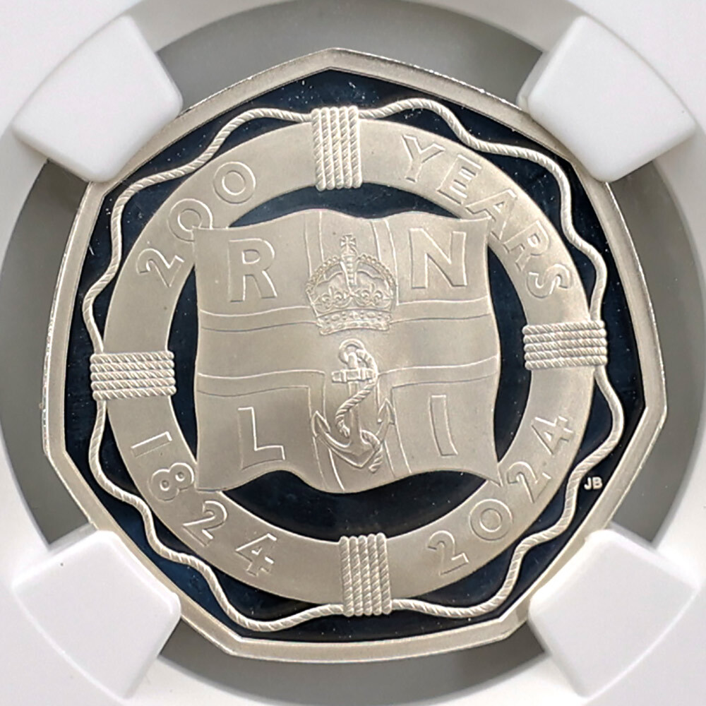 試鋳貨 2024 英国 RNLI200周年 50ペンス 銀貨 プルーフ NGC PF 69 UC 最高鑑定 完全未使用品 元箱付 イギリス 銀貨 世界で1枚のみ