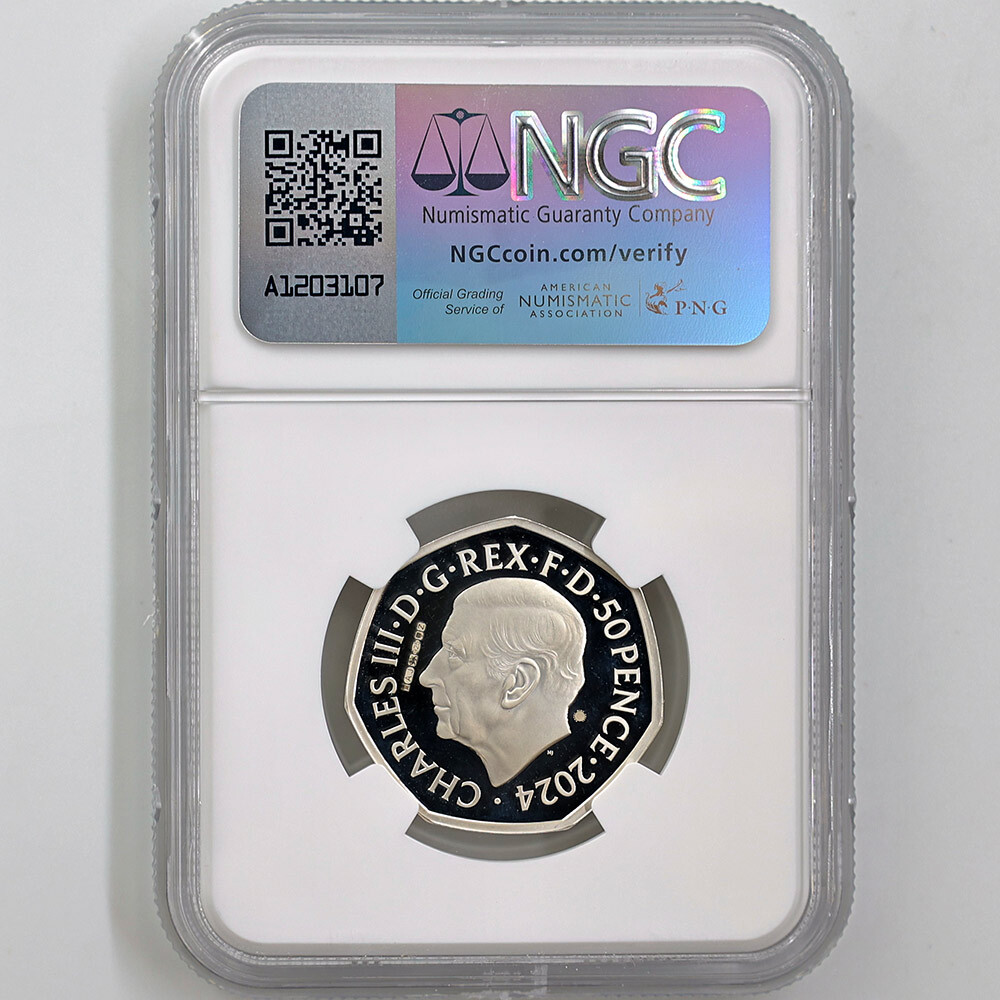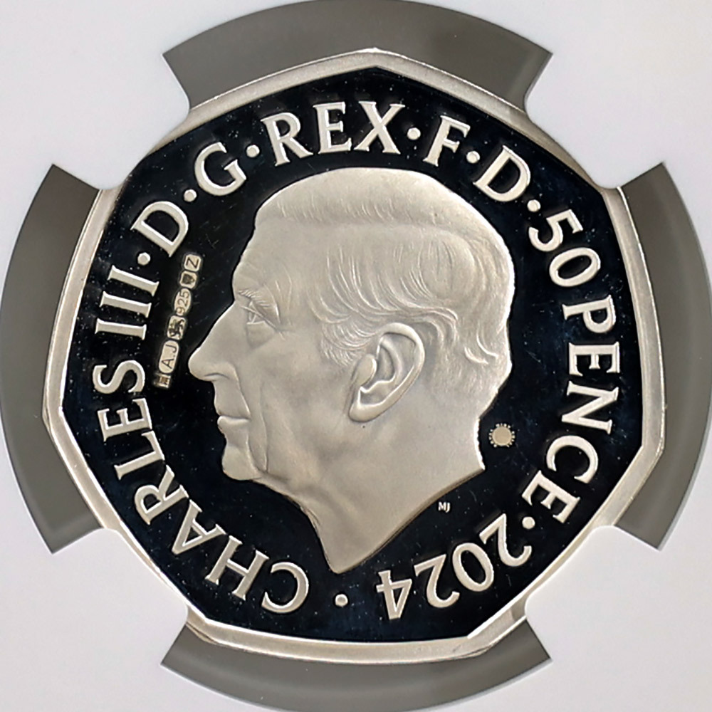 裏面にはチャールズ3世の左向き肖像と、「CHARLES III・D・G・REX・F・D・50 PENCE・2024」の