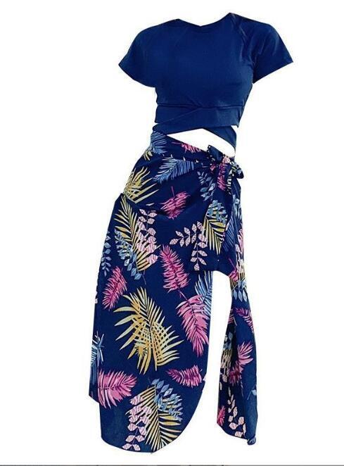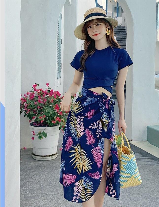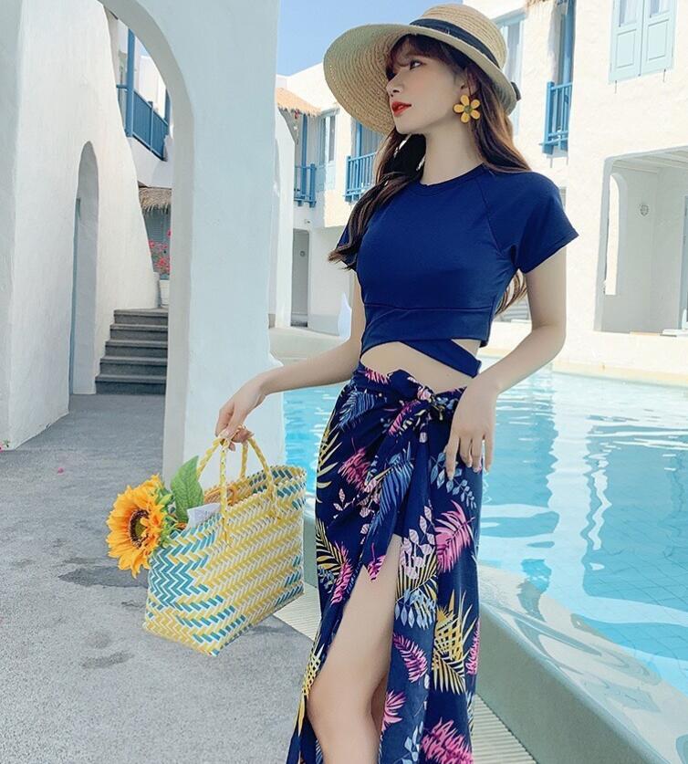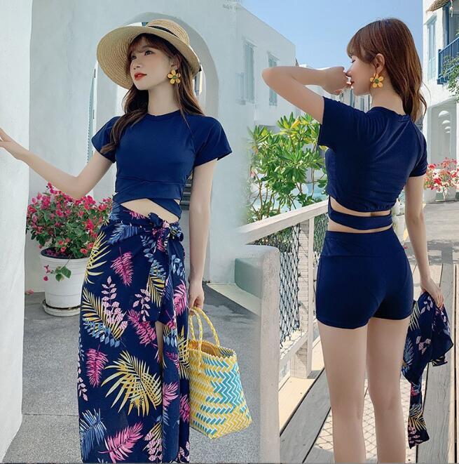 新入荷韓国風 スイムウェア 水着 レディース 3点セット 体型カバー水着 40代 30代 50代 ママ水着 セパレート ネイビー M