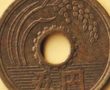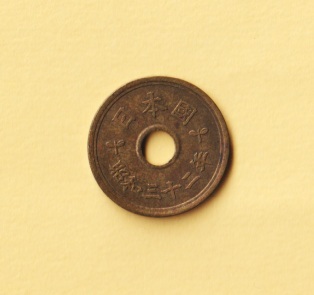 ☆5円黄銅貨《昭和32年》 穴ズレエラー  美品