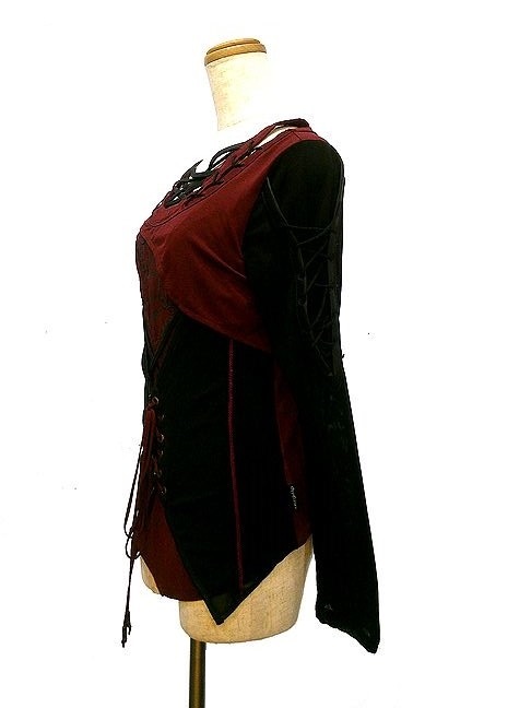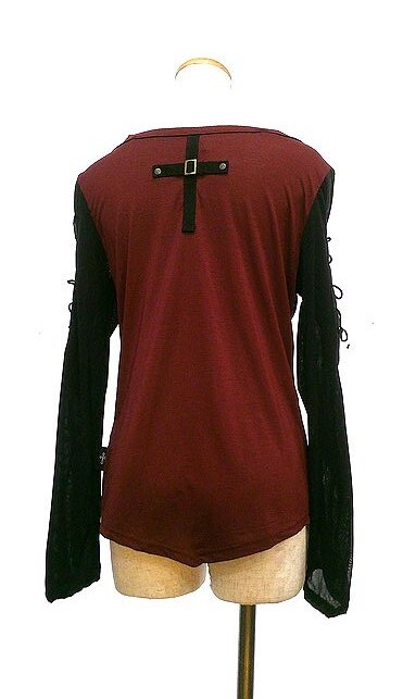 OZZ CROCE の袖シースルーレースアップ刺繍デザイン カットソー です。袖や首回り、お腹などがレースアップされたデザイン!胸元に刺繍入りで、色の違う生地が組み合わさっています。状態は若干の使用感程度。サイズは肩幅は39cm、身幅46cm、着丈65cm、袖丈65cm。15180(20)20250804