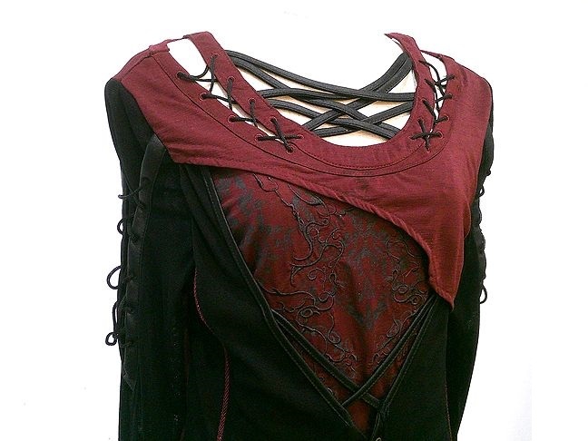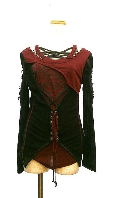 OZZ CROCE 袖シースルーレースアップ刺繍デザイン カットソー