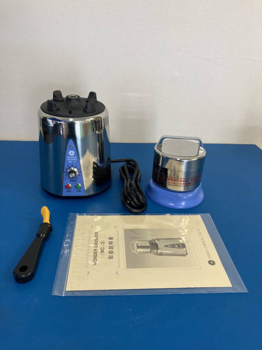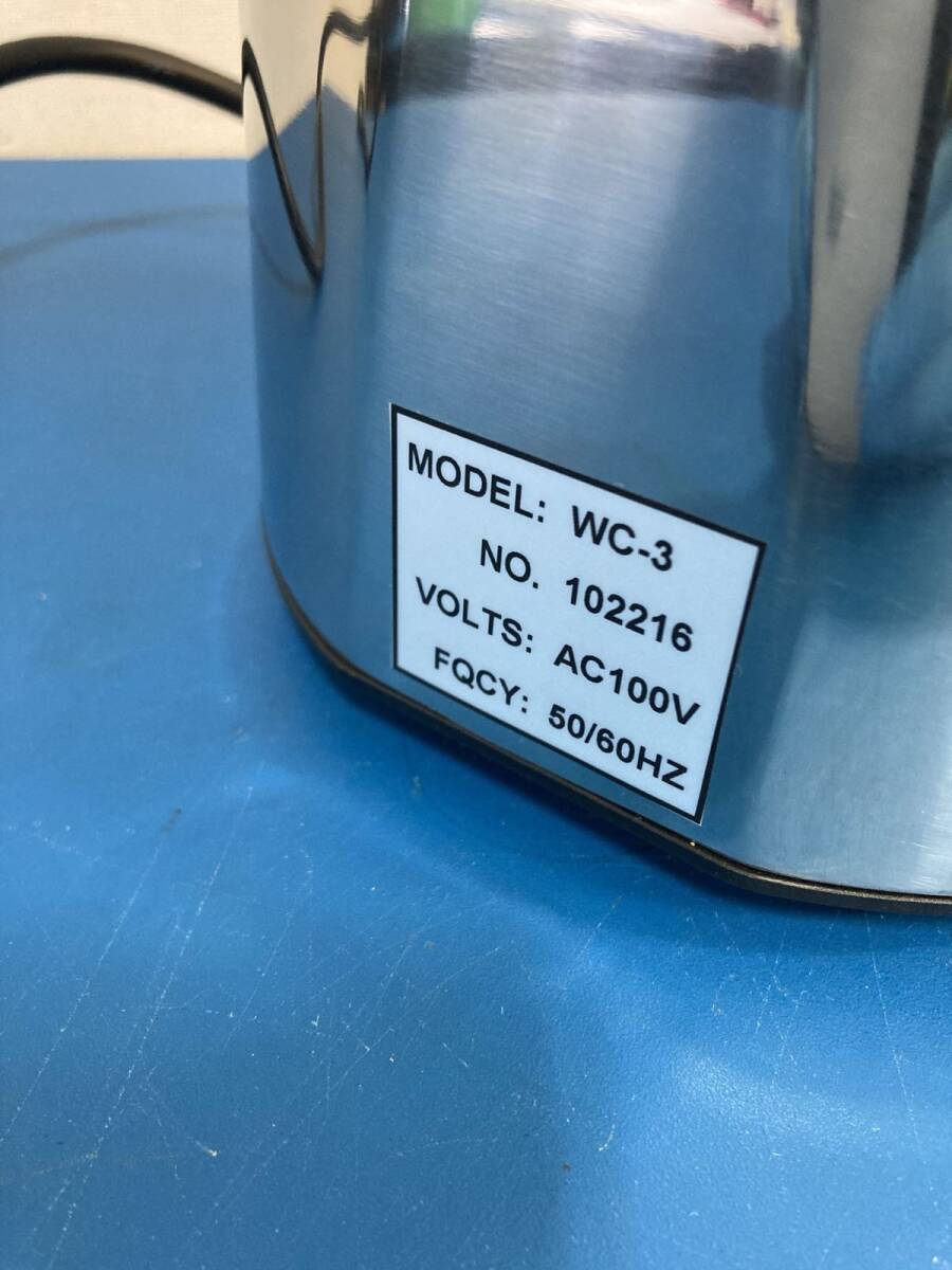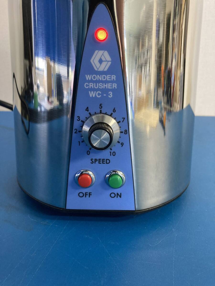 | 仕様 型式WC-3(標準フタ付) 電源100V, 50/60Hz 電気容量1,200W(定格1分) 回転数可変:0~28,000rpm (無負荷時) 寸法(W)170 × (D)170 × (H)330mm 重量5.0kg ※粉砕容器部セット時 容量150mL ※付属容器使用の場合 付属品WC-3150mL 容器セット(標準フタ)、クリーナーブラシ |