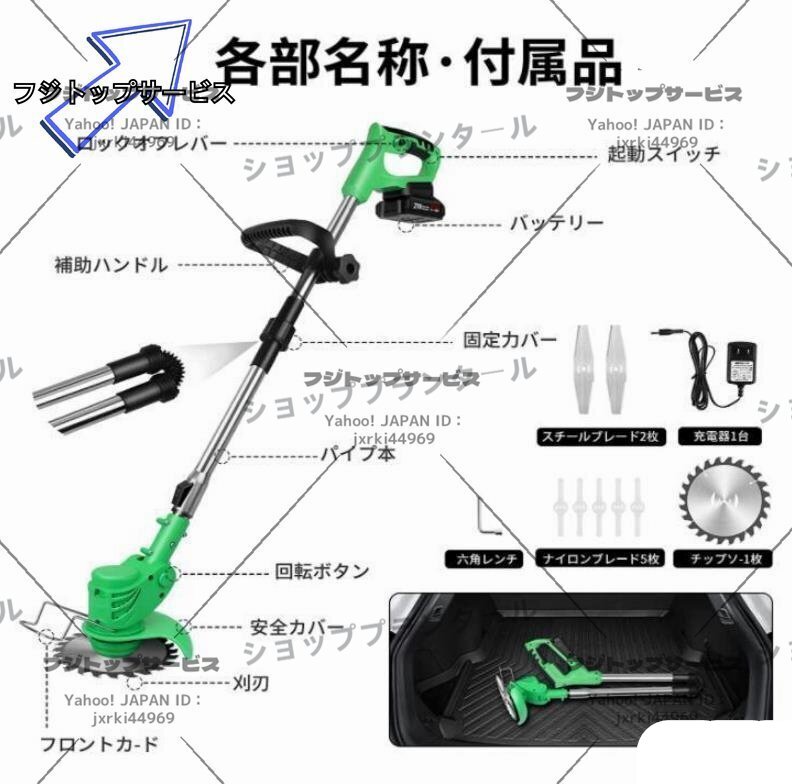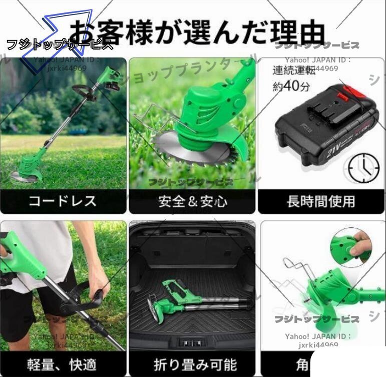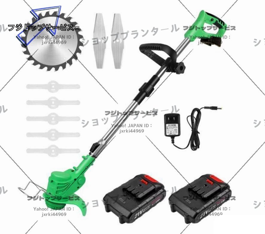 充電式草刈機 草刈り機 コードレス最新型 伸縮 角度調整 枝切り 芝生 畑 雑草 植木 刈払機 軽量 (折り畳み式草刈り機+バッテリー2個)