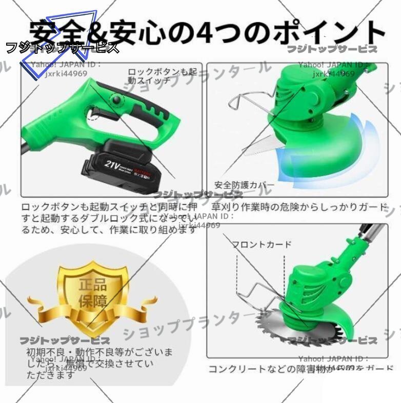 ◆コードレス草刈機はどこでも気軽に使えます!補助輪で掃除機のような動作で草刈りが可能です。コードレスでコンセントの確認等の電源確保のストレスから解放!壁際や低い場所も手楽にカットできます