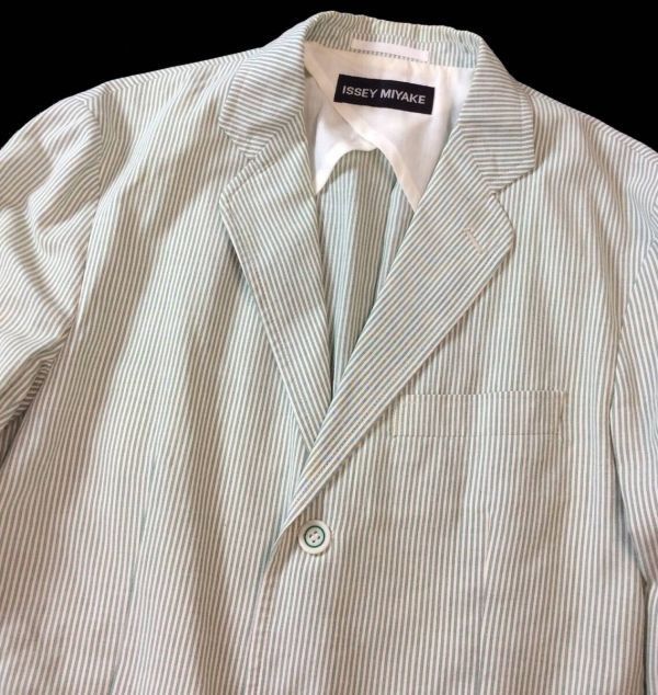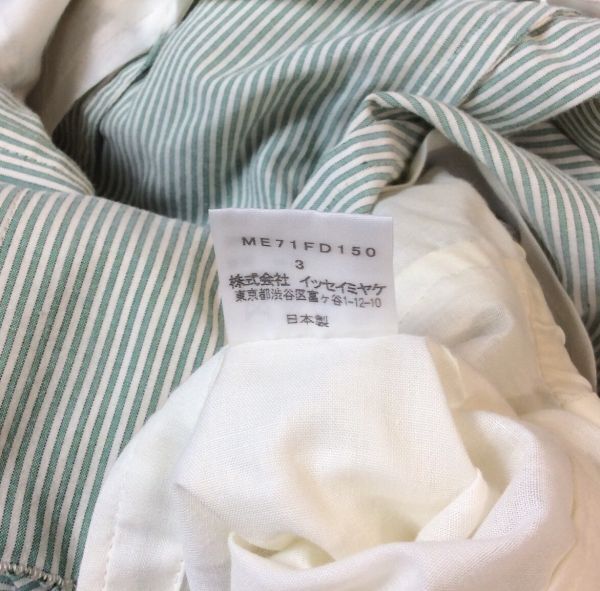 ISSEY MIYAKE イッセイミヤケ ストライプ テーラードジャケット グリーン/ホワイト ジャケット コットン/レーヨン メンズ 3