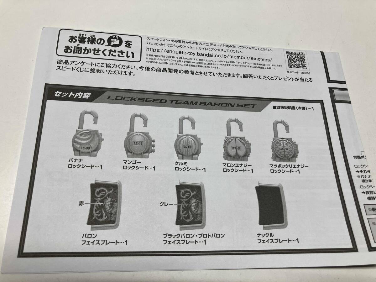 【セット内容】バナナロックシード、マンゴーロックシード、クルミロックシード、マロンエナジーロックシード、マツボックリエナジーロックシード、バロンフェイスプレート、ブラックバロン/プロトバロンフェイスプレート、ナックルフェイスプレート、取扱説明書【サイズ(スケール)】各ロックシード…H約82mm×W約60mm×D約46mm 各フェイスプレート…H約80mm×W約48mm×D約14mm |